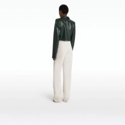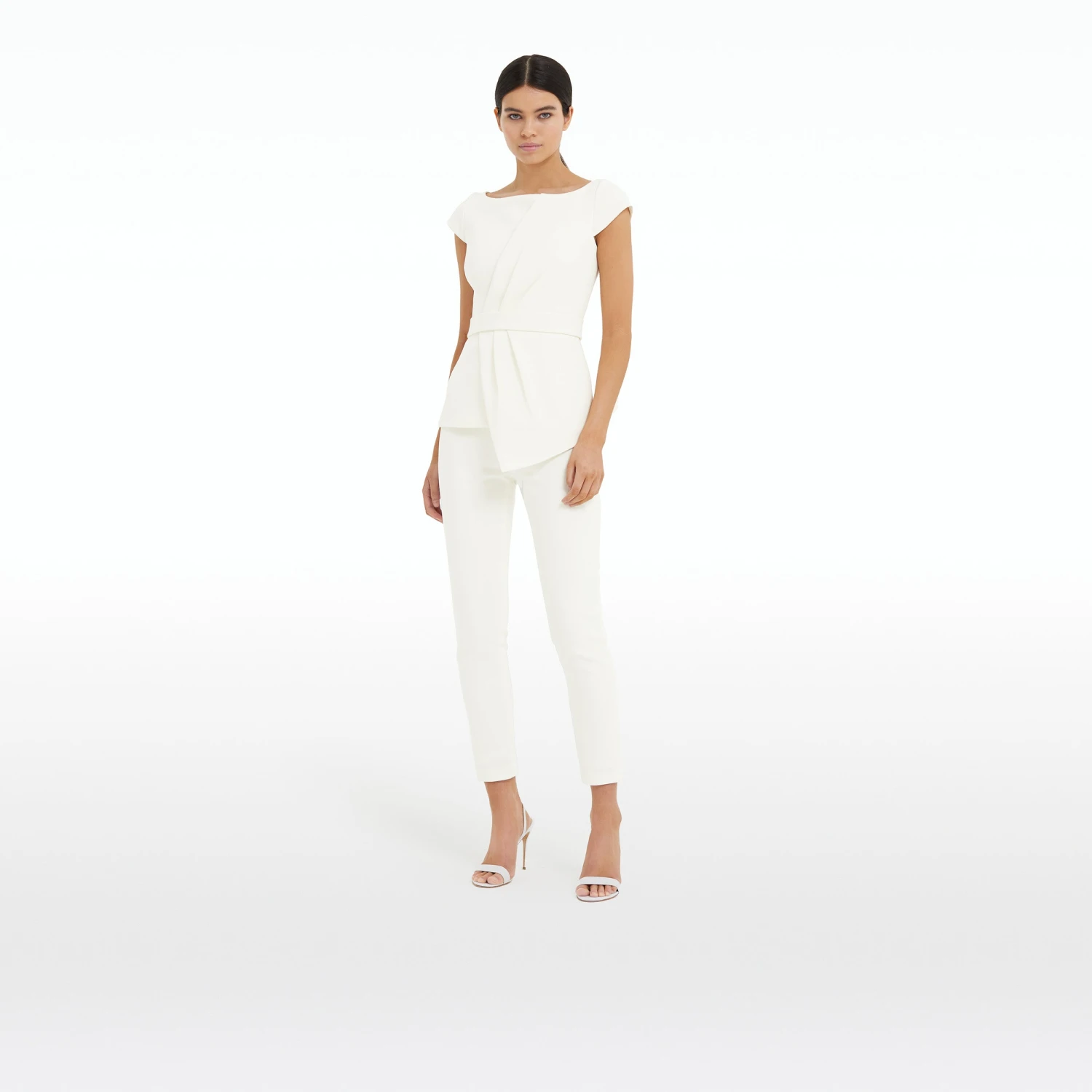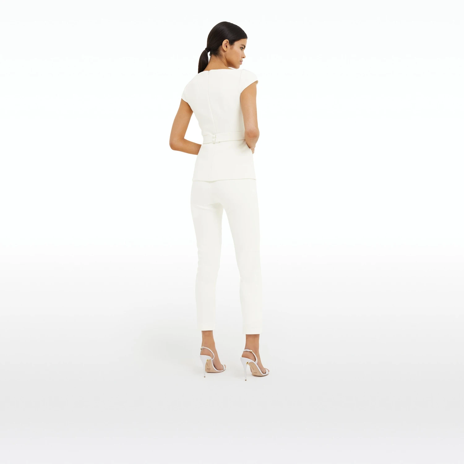 Ivory heavy crepe trousers, slim-cut and cropped above the ankle.
