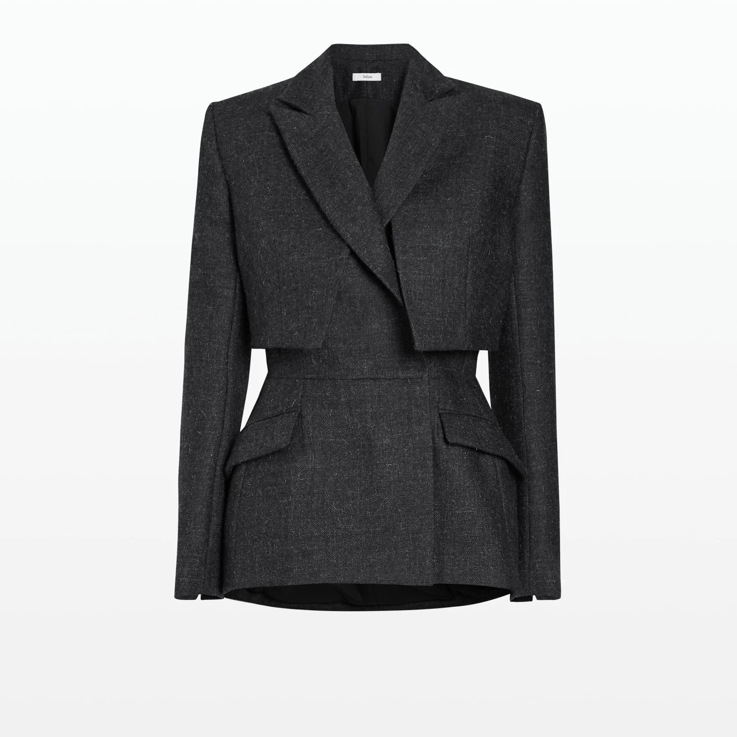 Structured waistcoat with tailored removable jacket in speckled grey Heavy Wool.