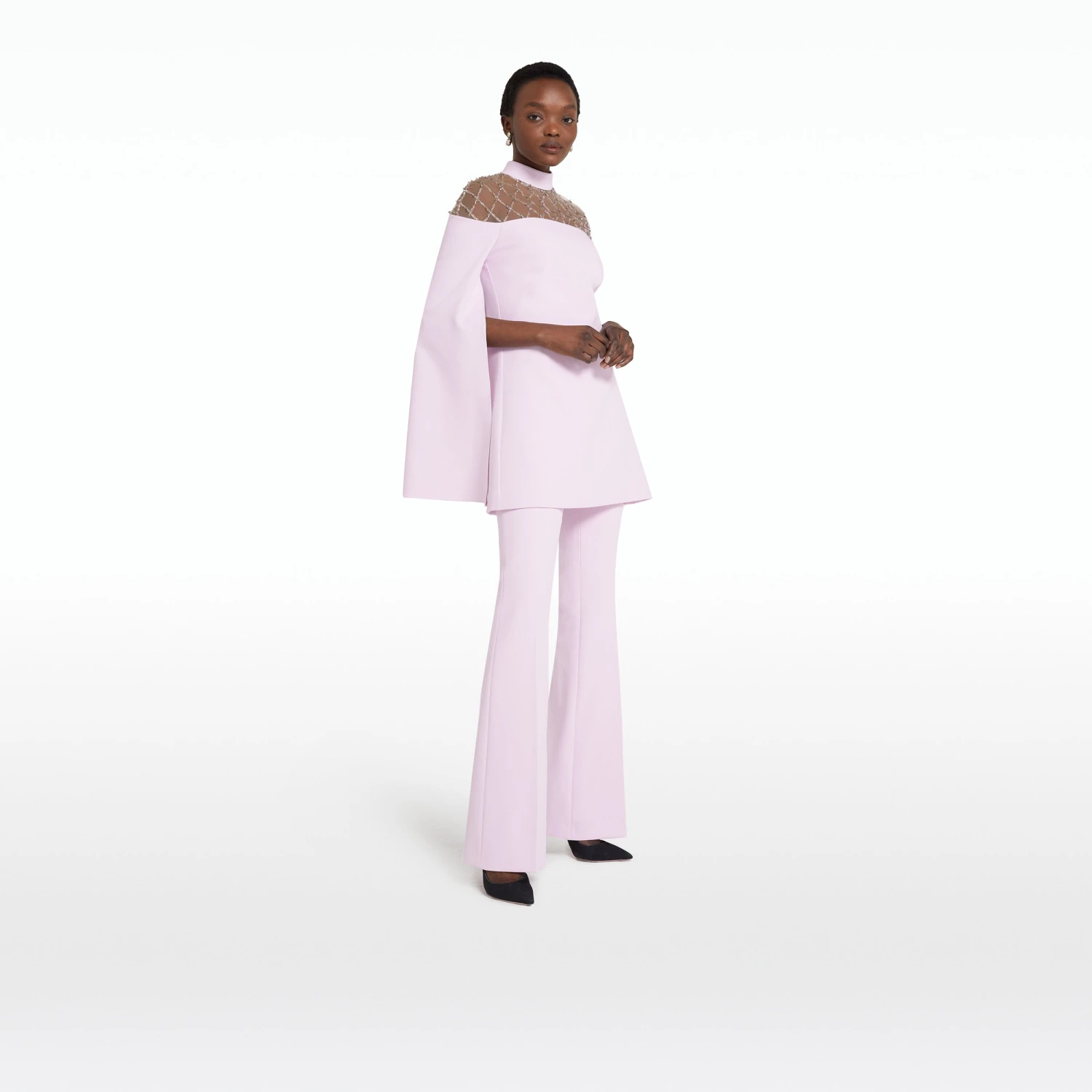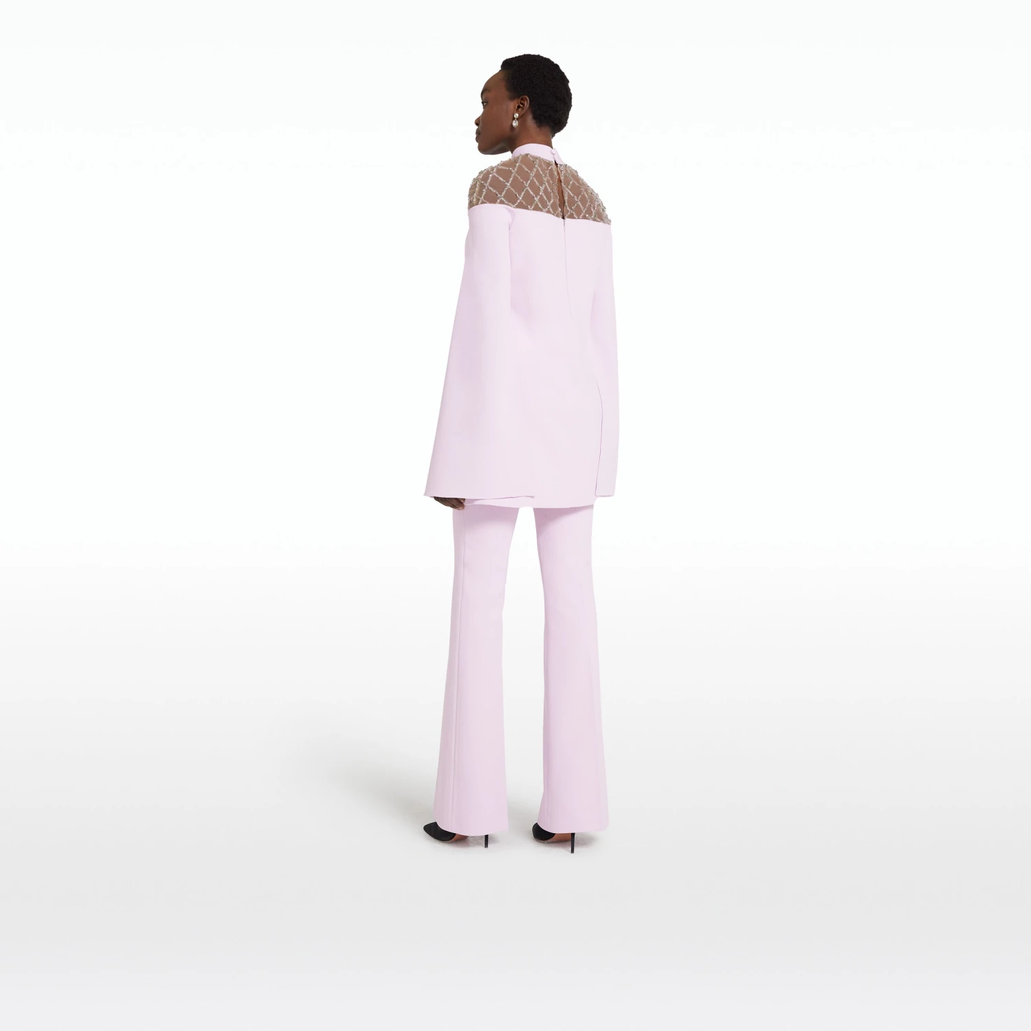 High waisted trousers with side zip and mild flare hem in lilac snow.