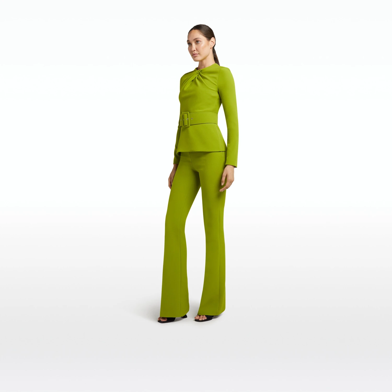 High waisted trousers with side zip and mild flare hem in woodbine Heavy Crepe