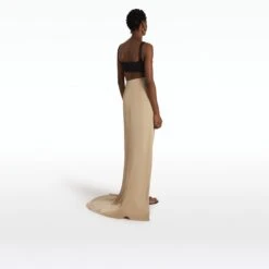 Flowing kaftan top with flattering seam detail in topaz Heavy Crepe with multi-brights Crystal Trim B embroidery.