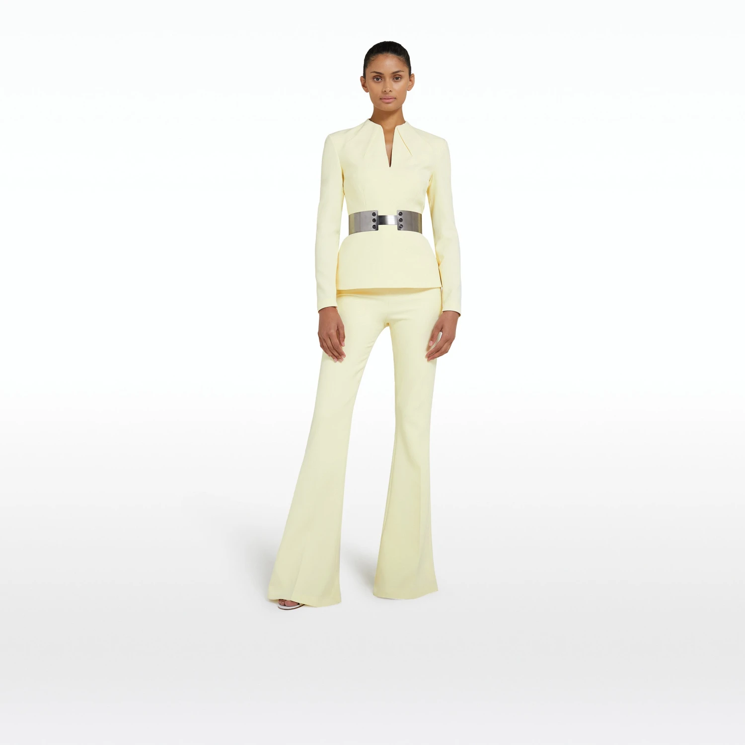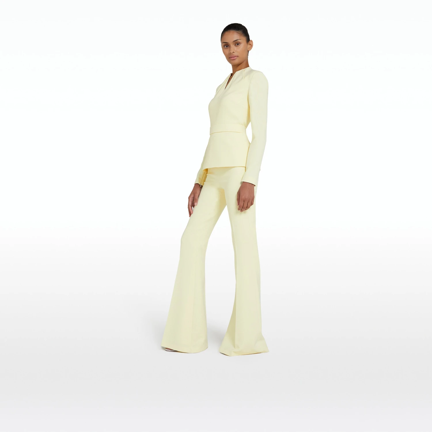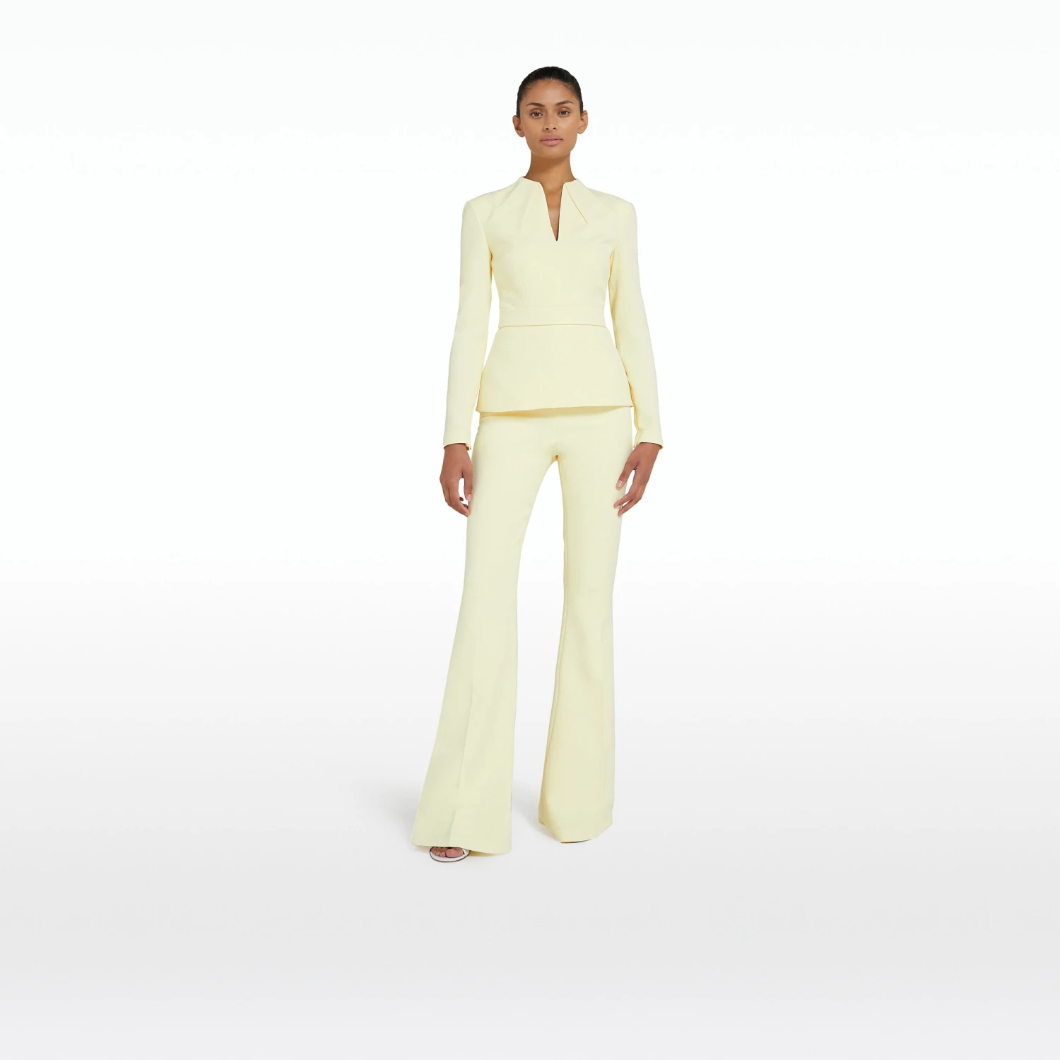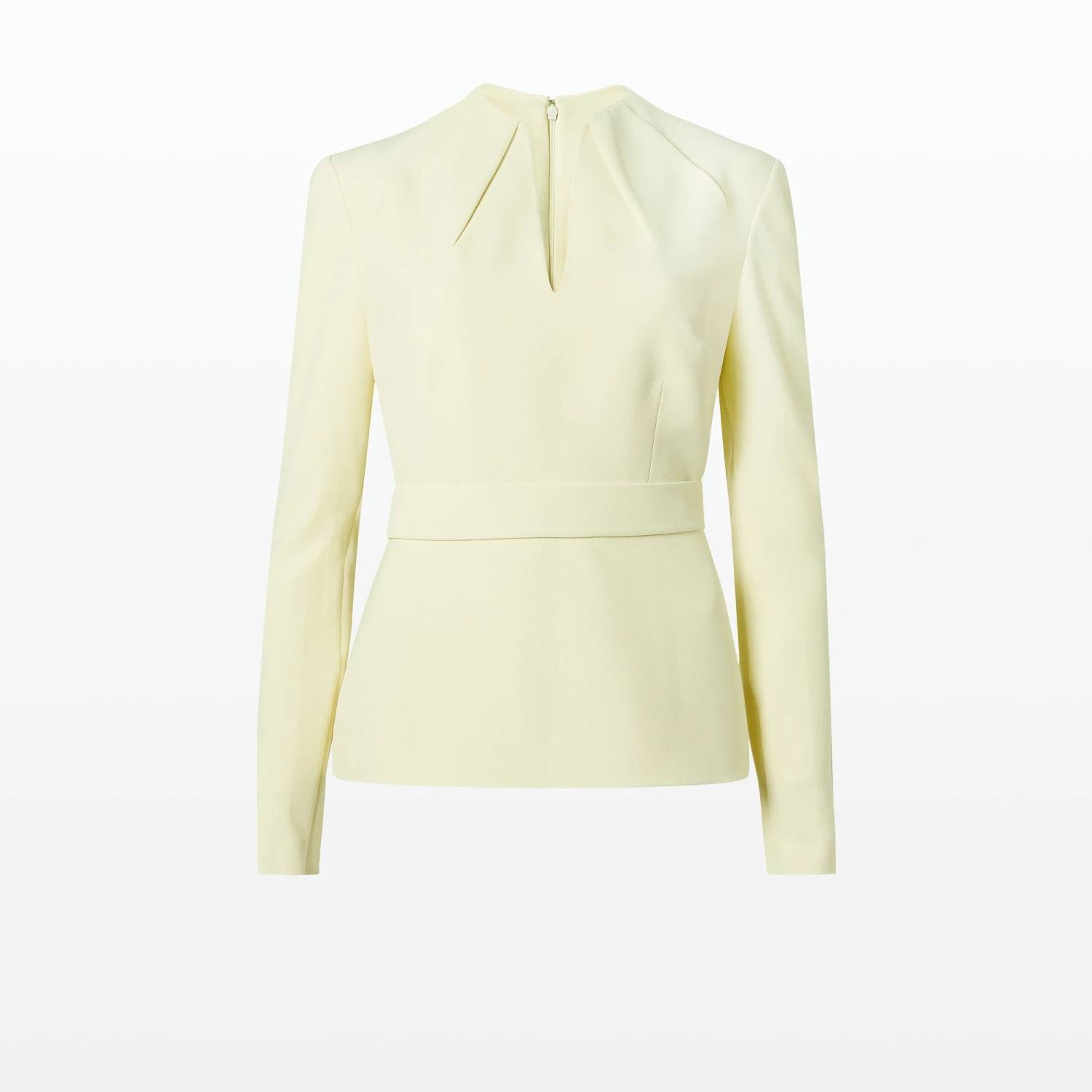 Long sleeve top with collar slit, fold shoulder detail and peplum in buttermilk.