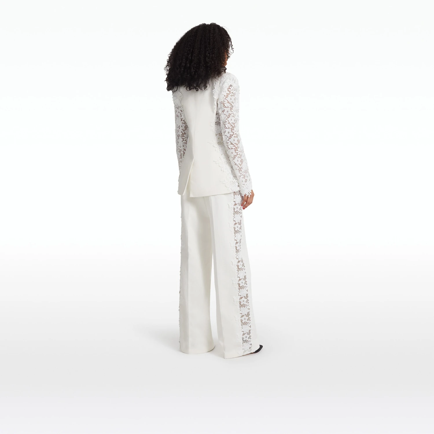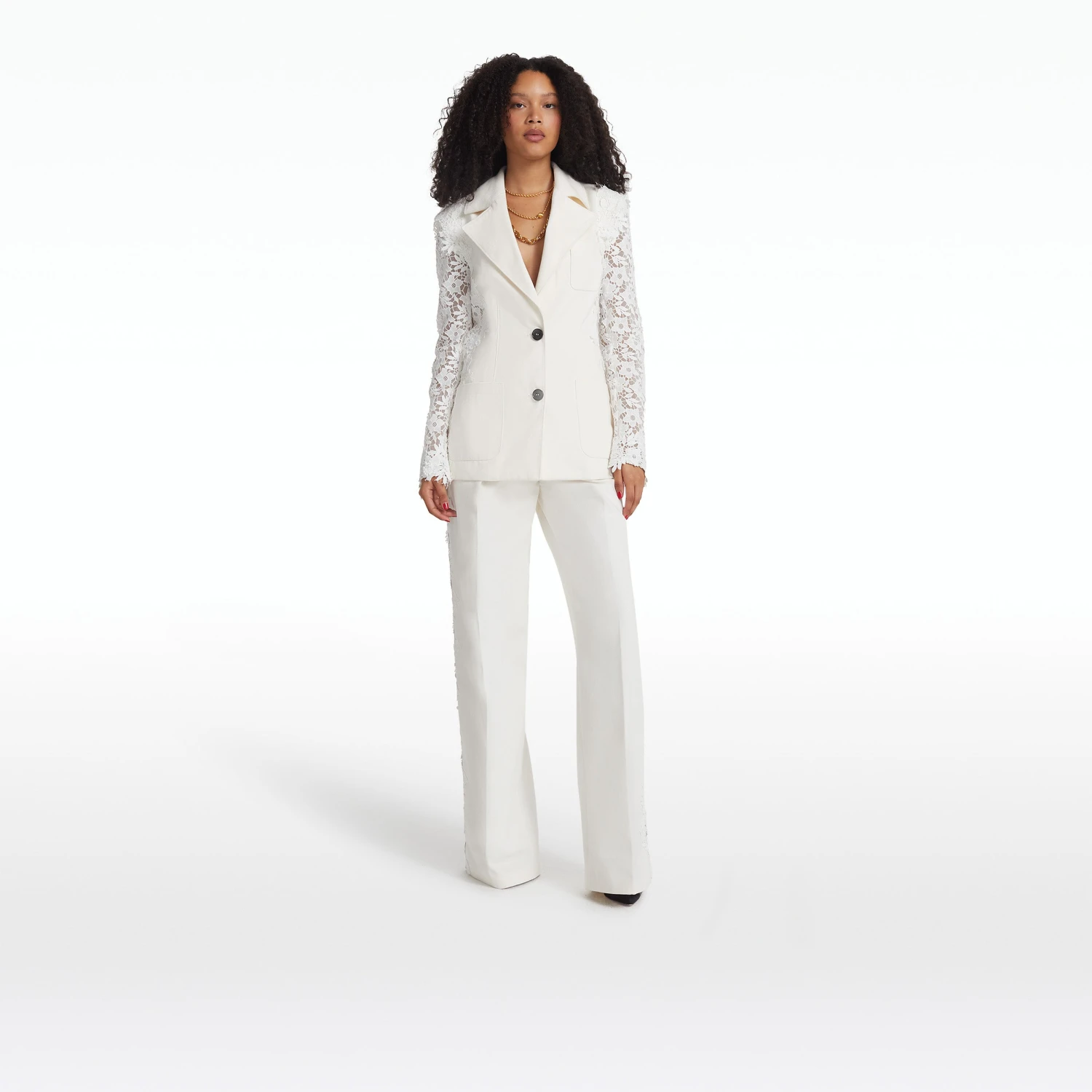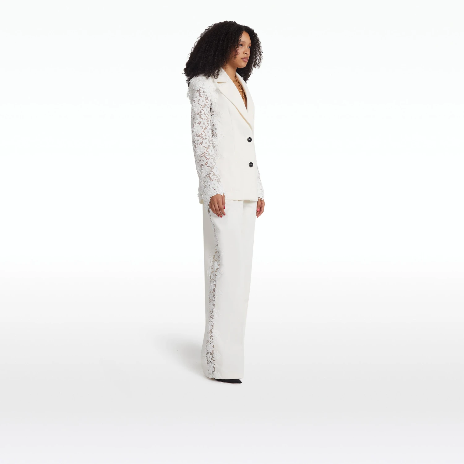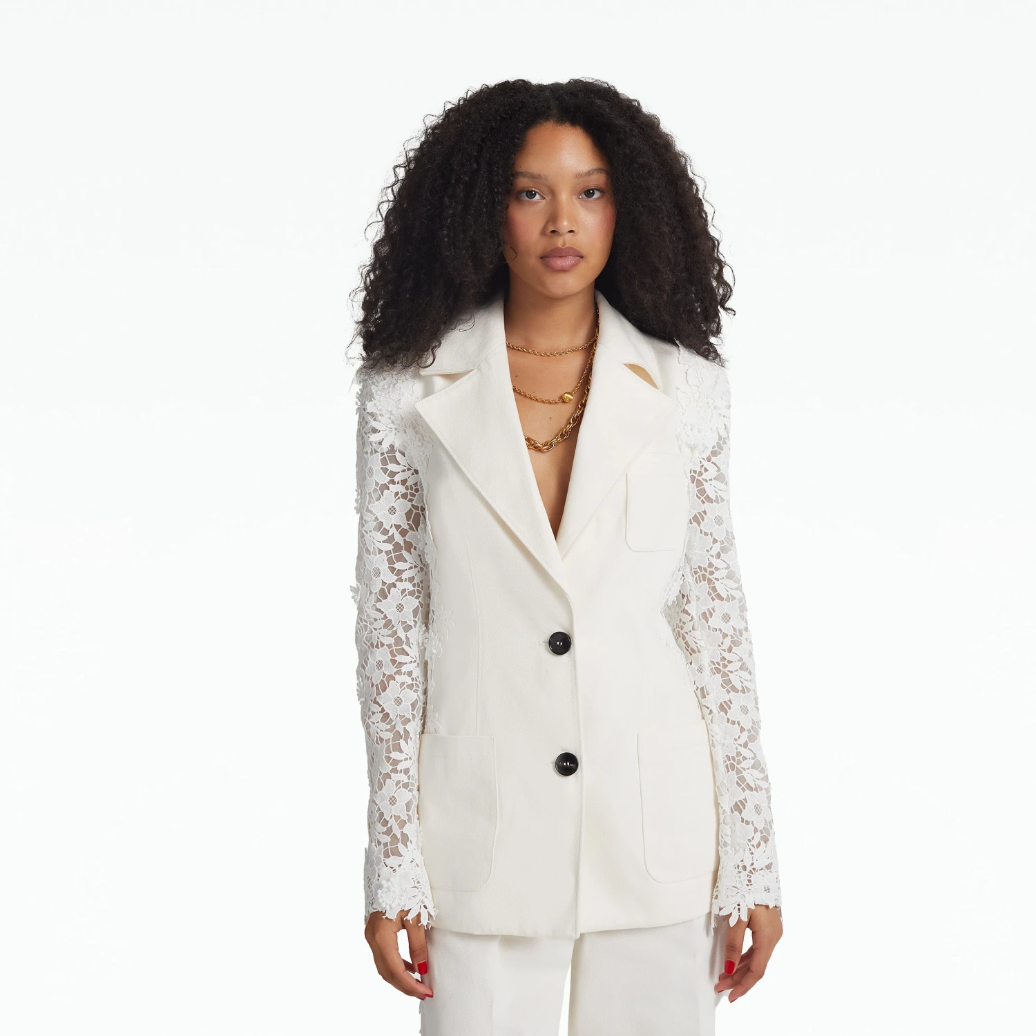 Classic, relaxed blazer with contrast panelling in ivory Heavy Cotton Drill & Picasso Lace.