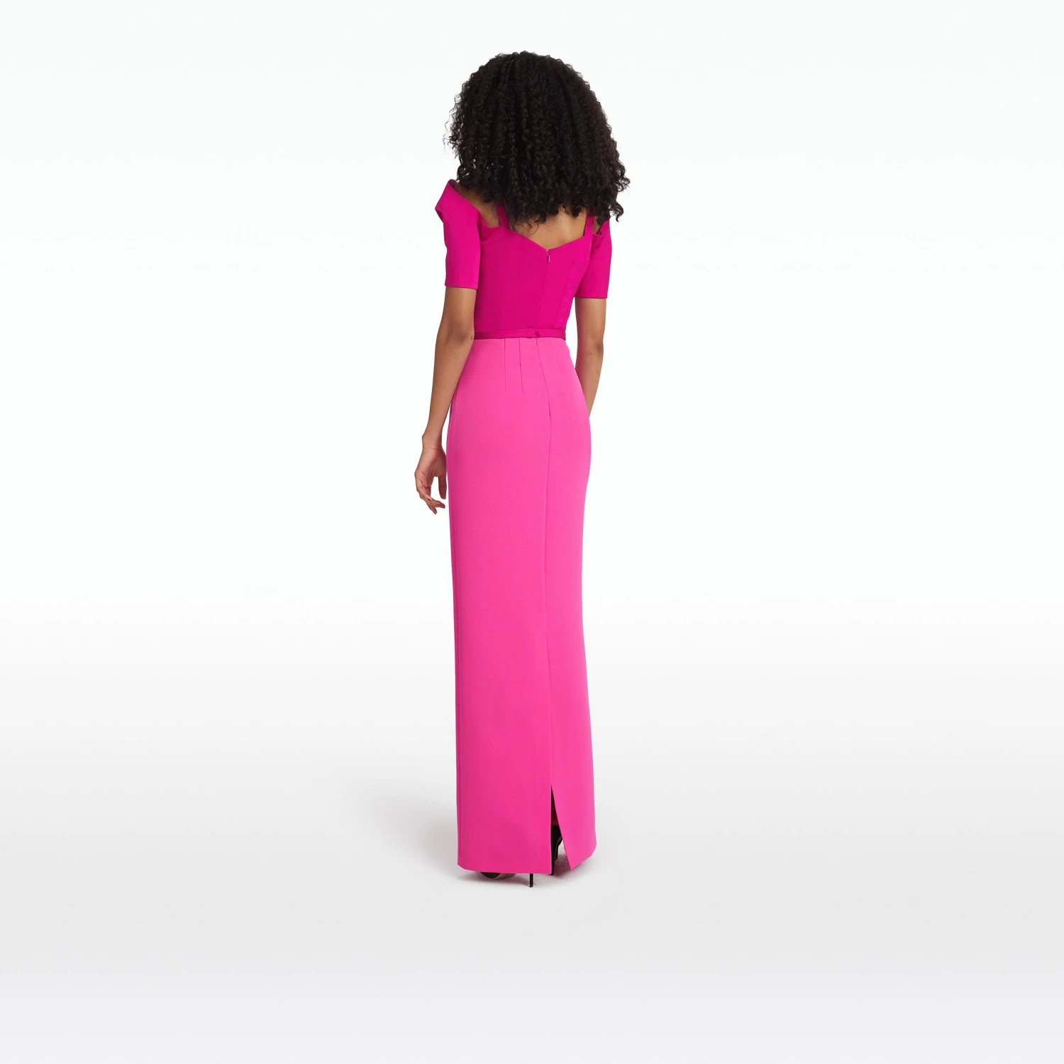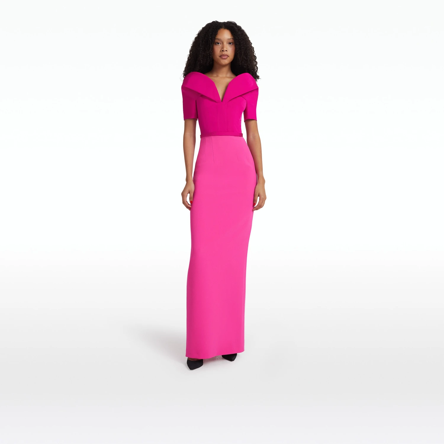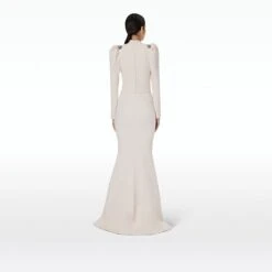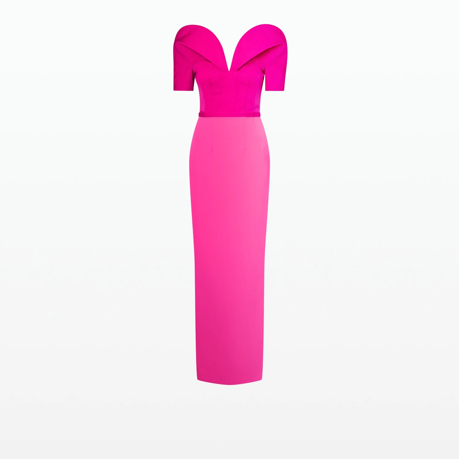 Column gown with contrast bust detail in beverley Heavy Crepe and Faille.