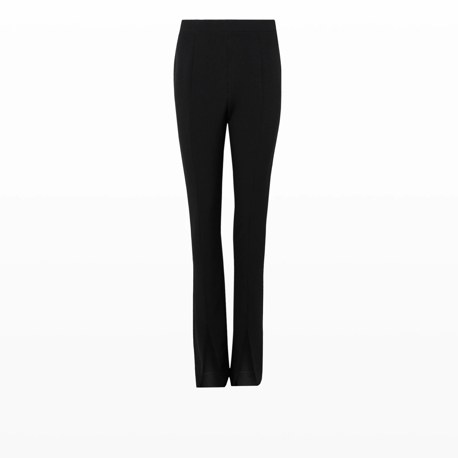 High waisted, fitted trouser with front seam and hem slit detail in black.