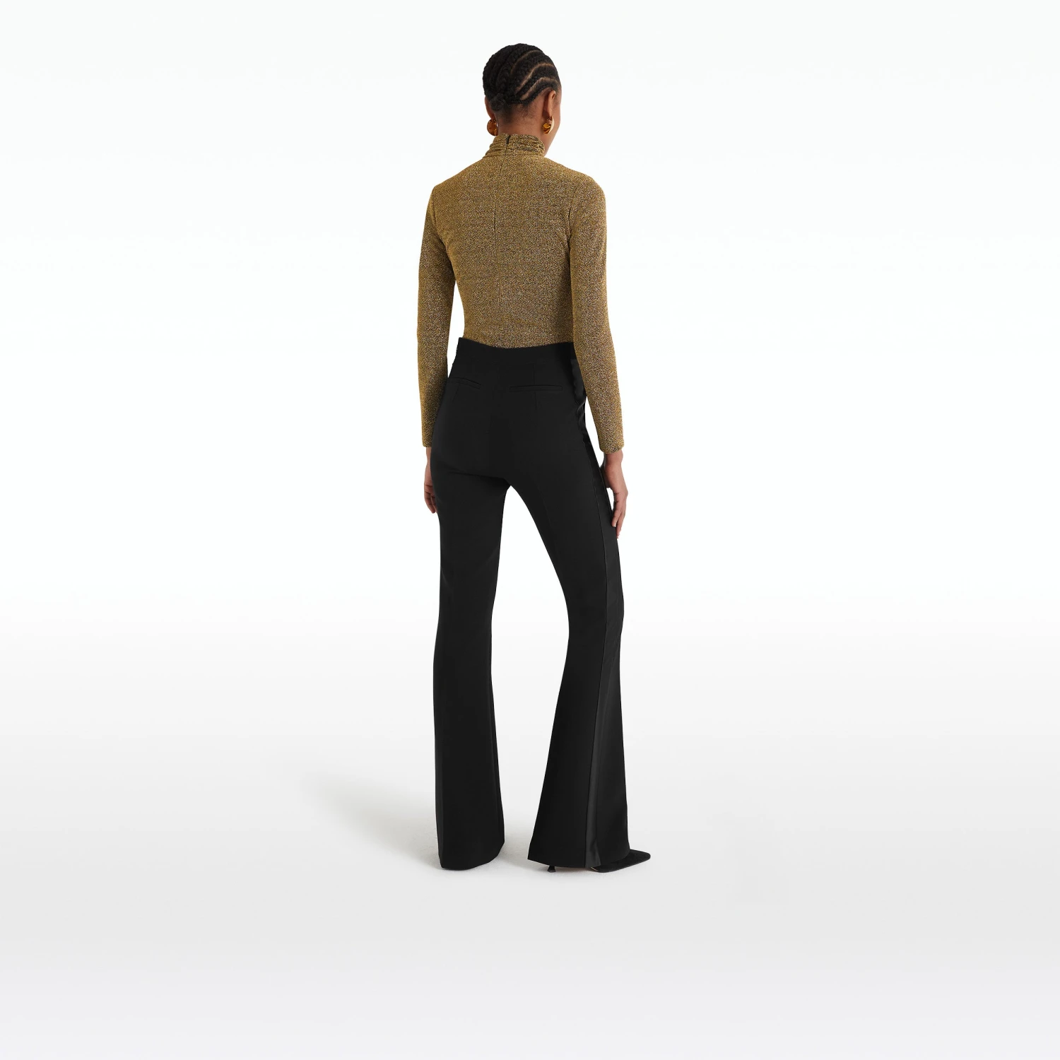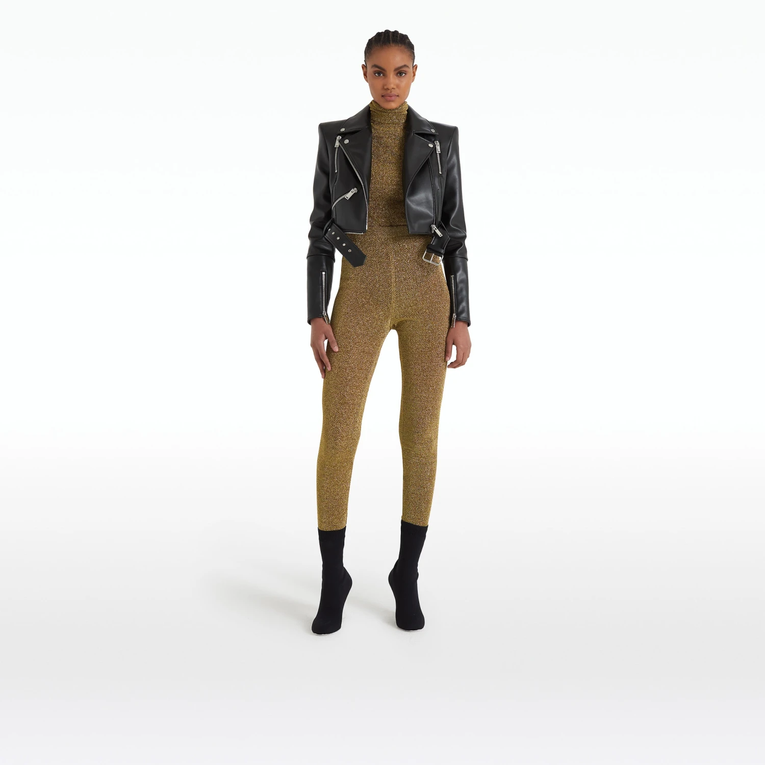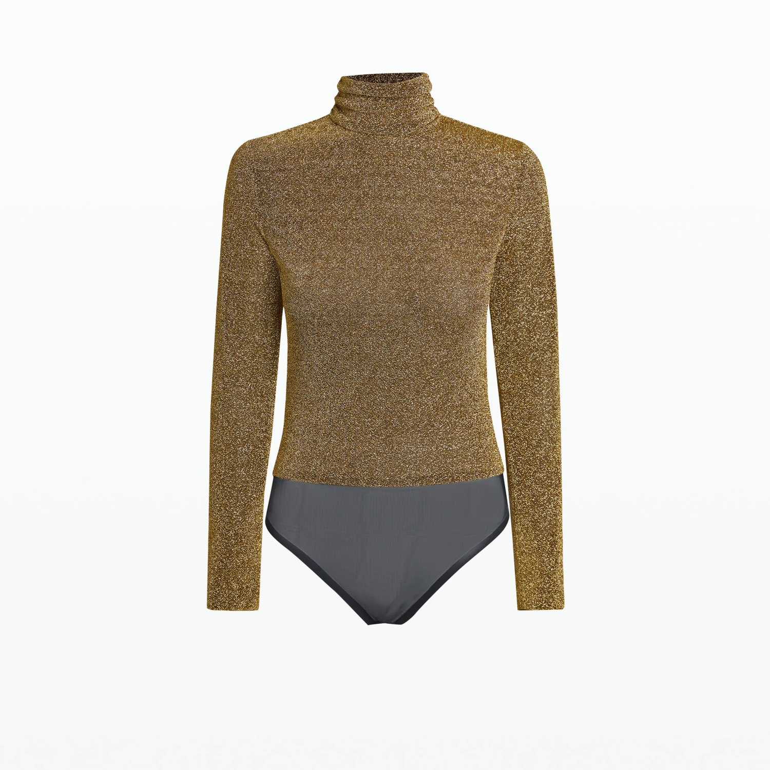 High neck bodysuit with long sleeves in gold Madonna Jersey.