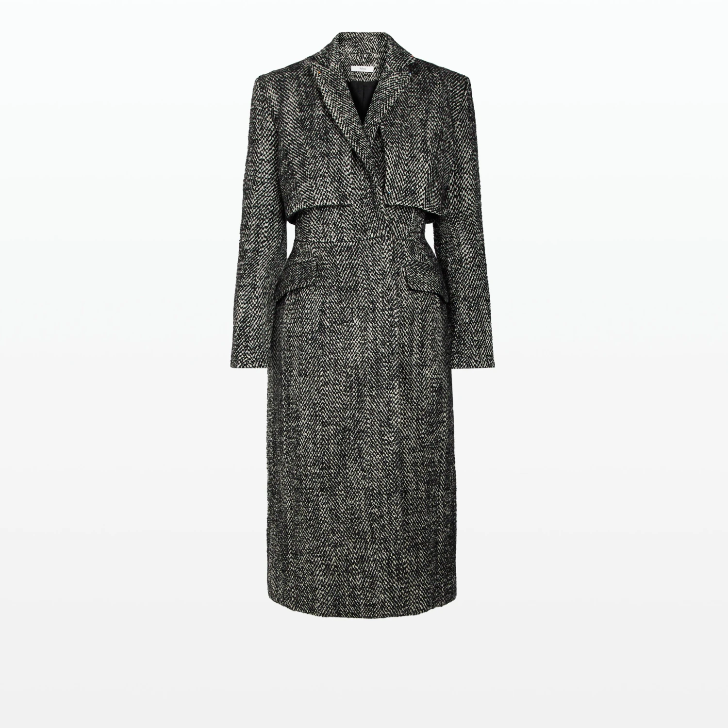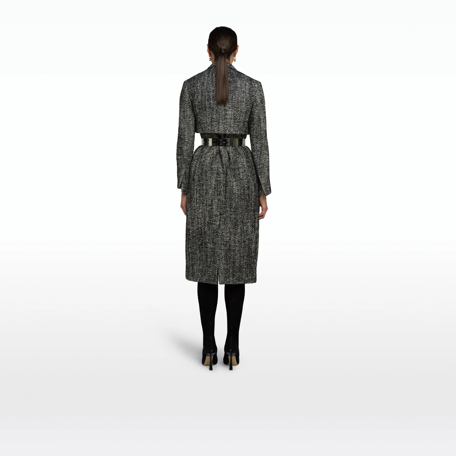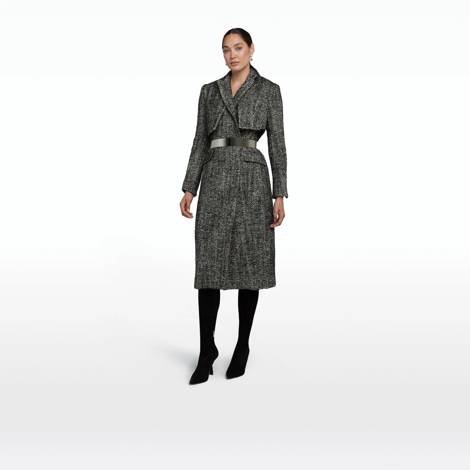 Structured longline waistcoat with tailored removable jacket in black herringbone Wool.