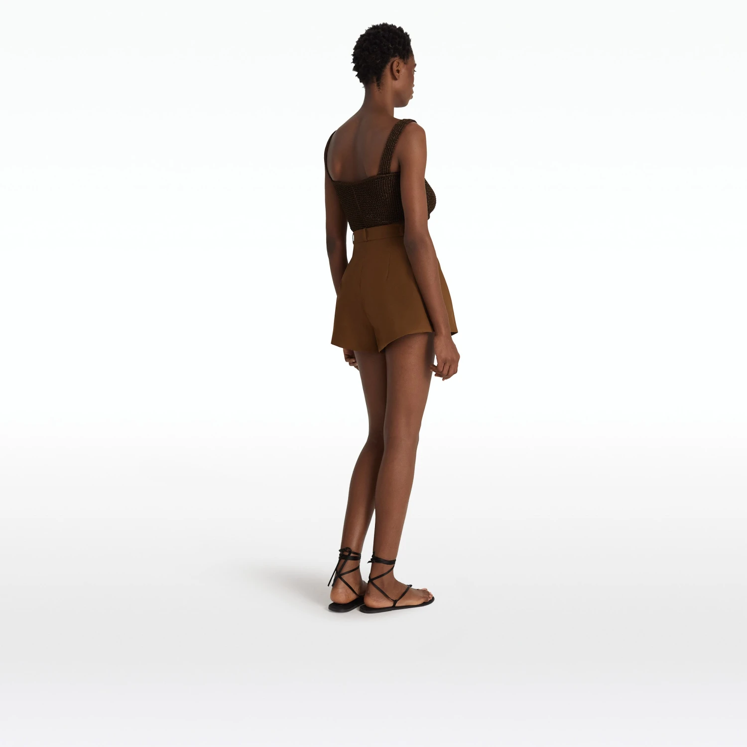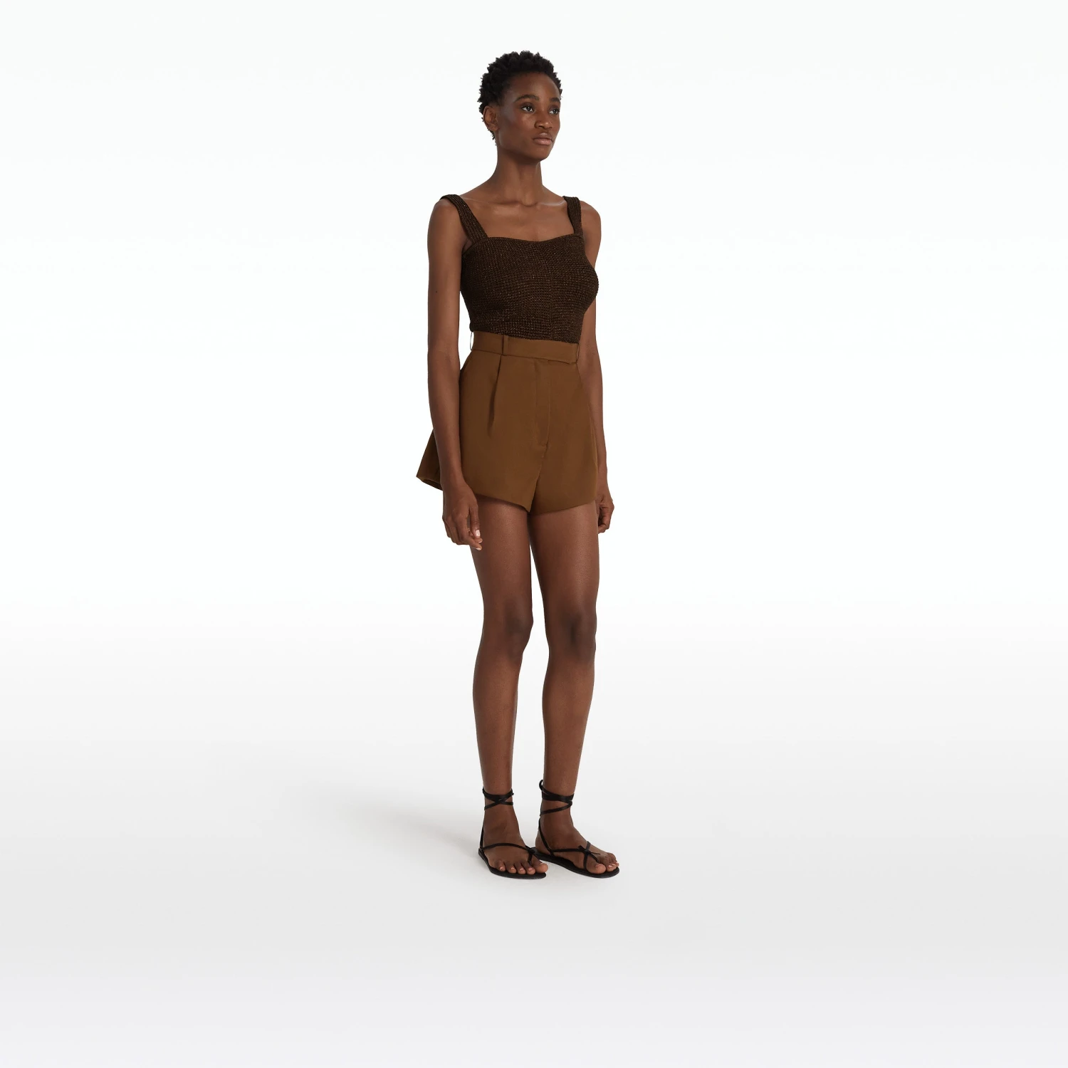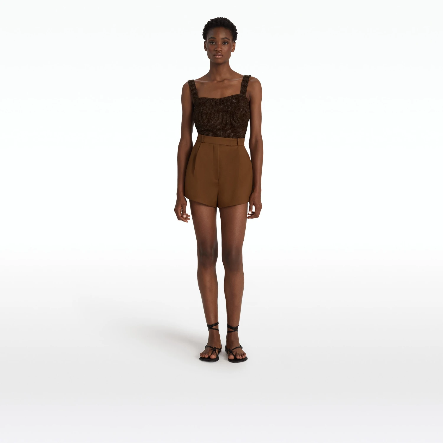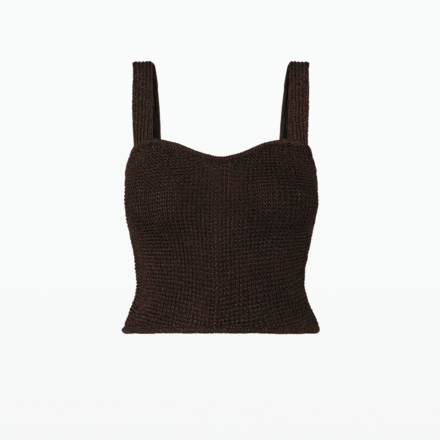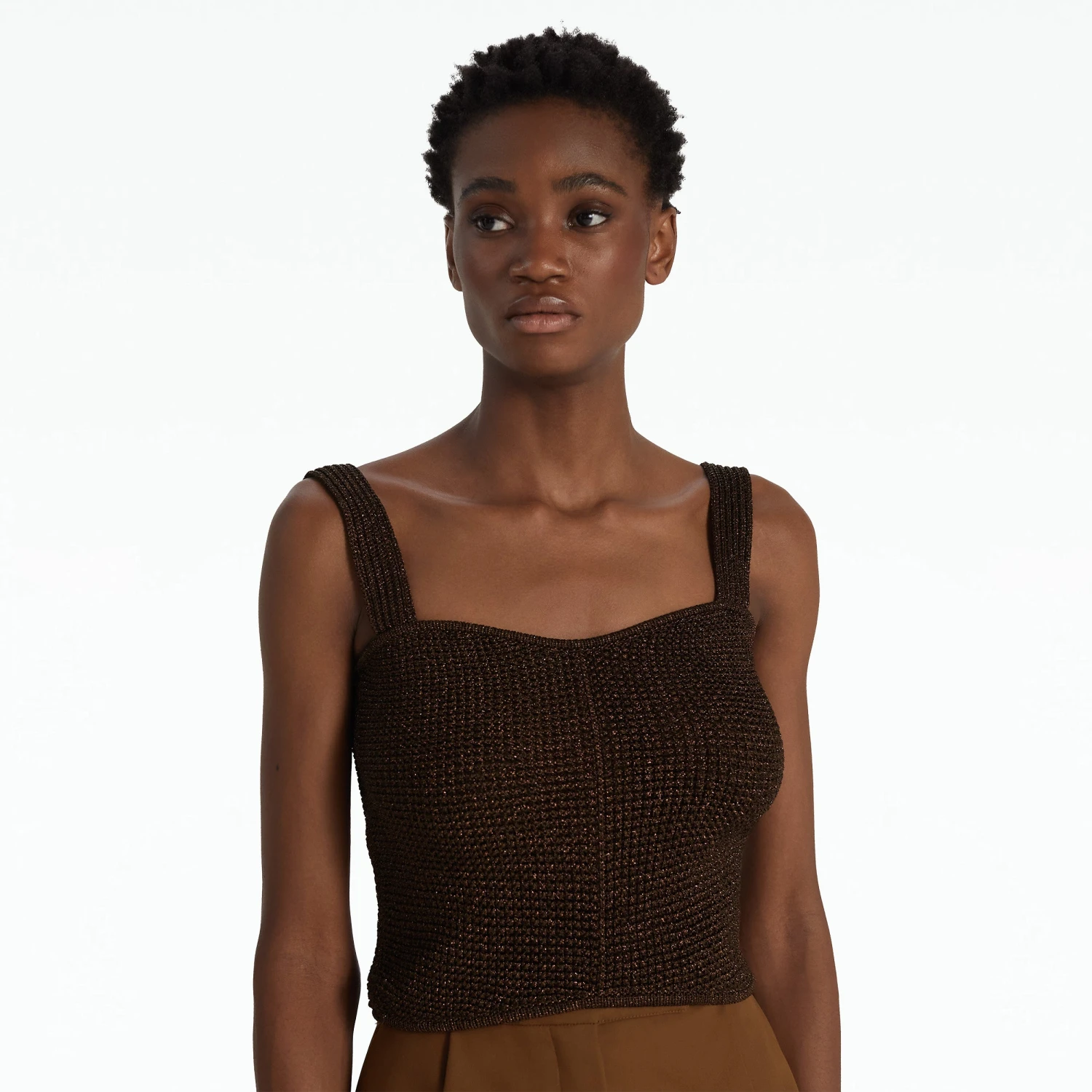 Cami style top with soft sweetheart neckline in deep brown Miami Knit.