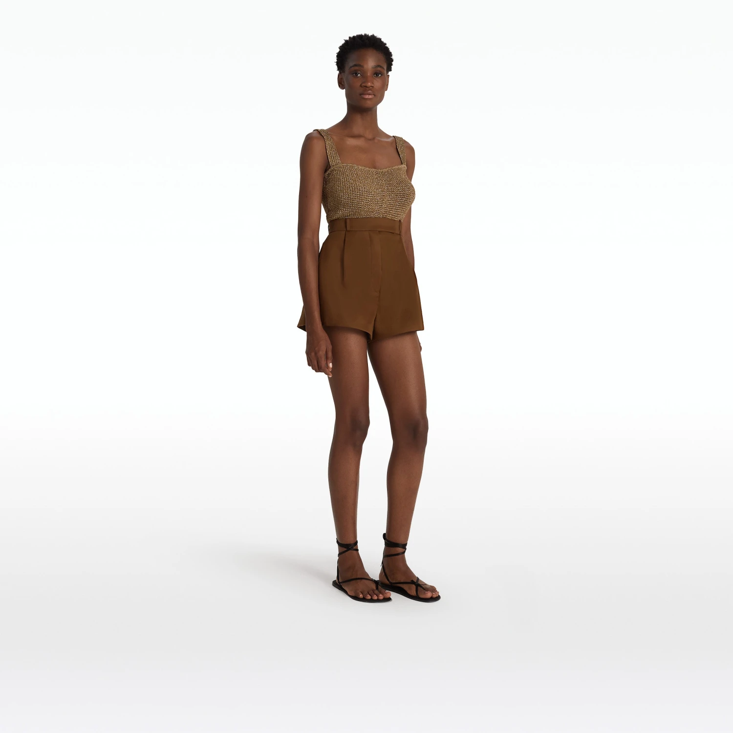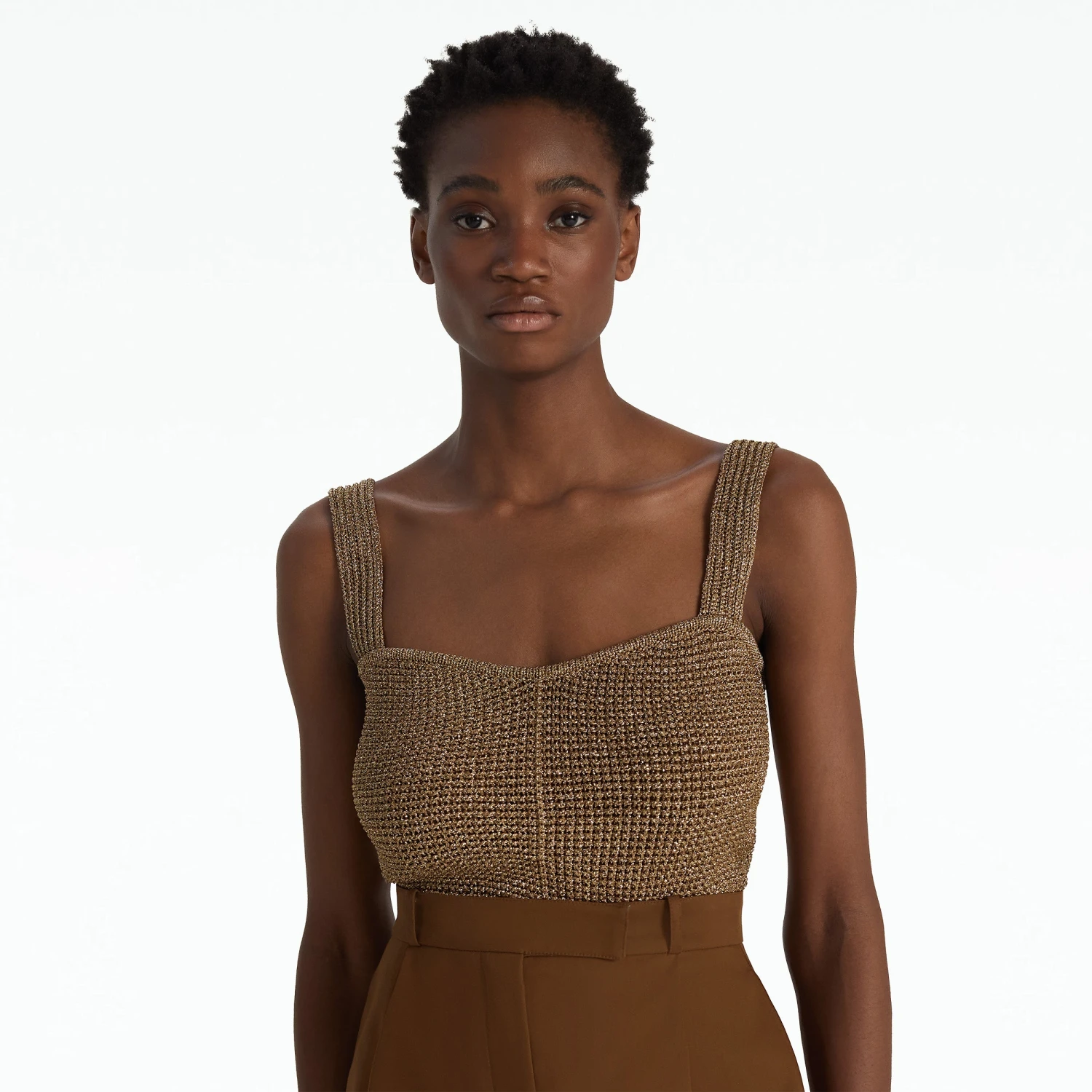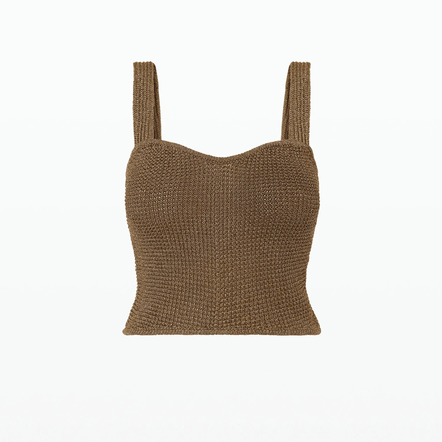 Cami style top with soft sweetheart neckline in gold Miami Knit.