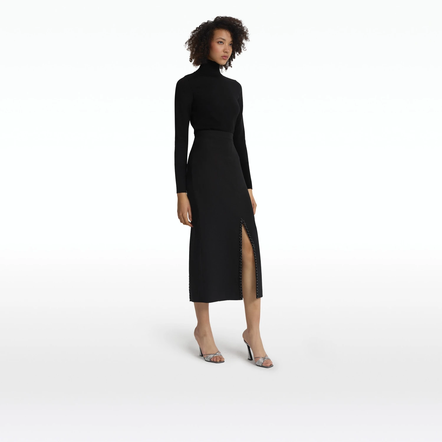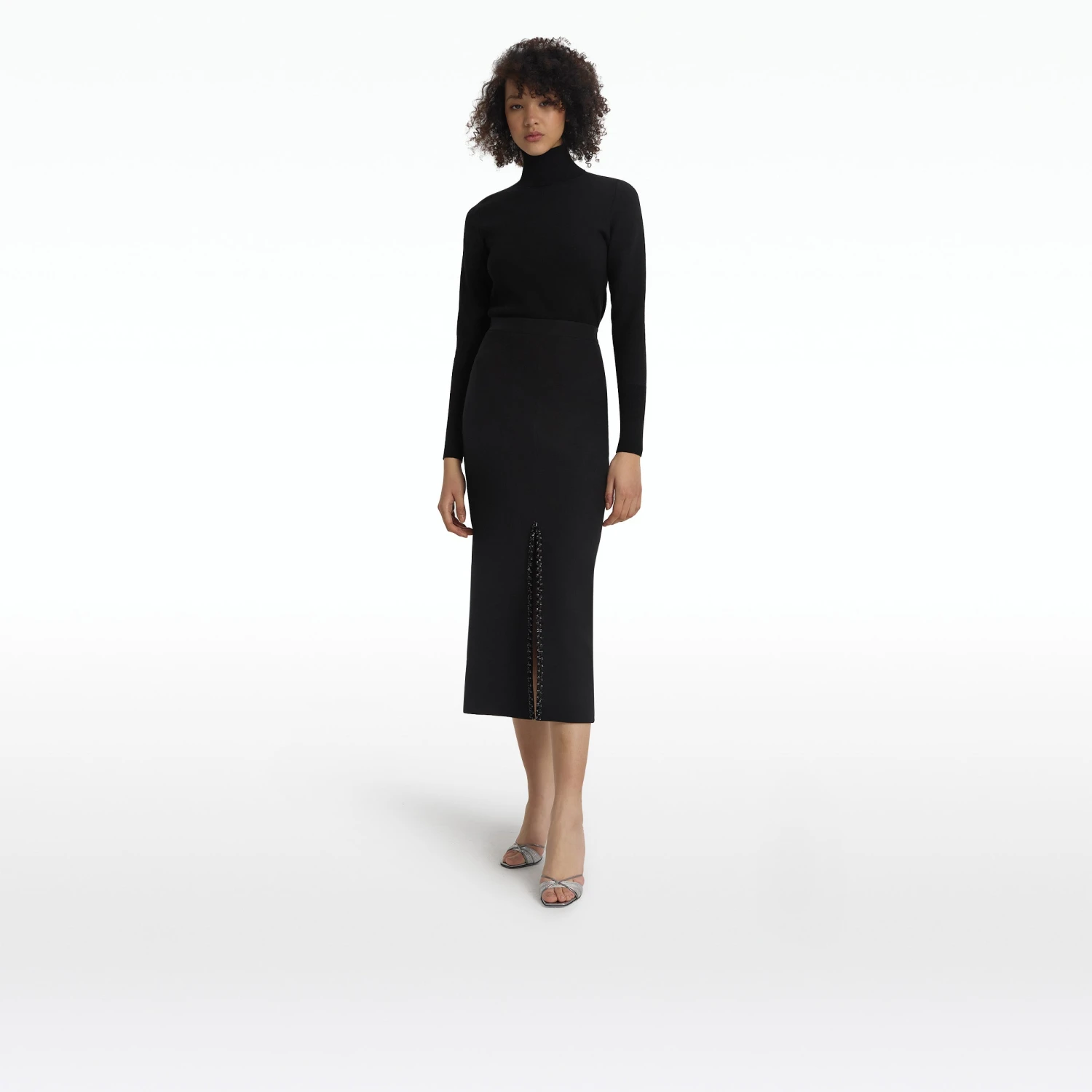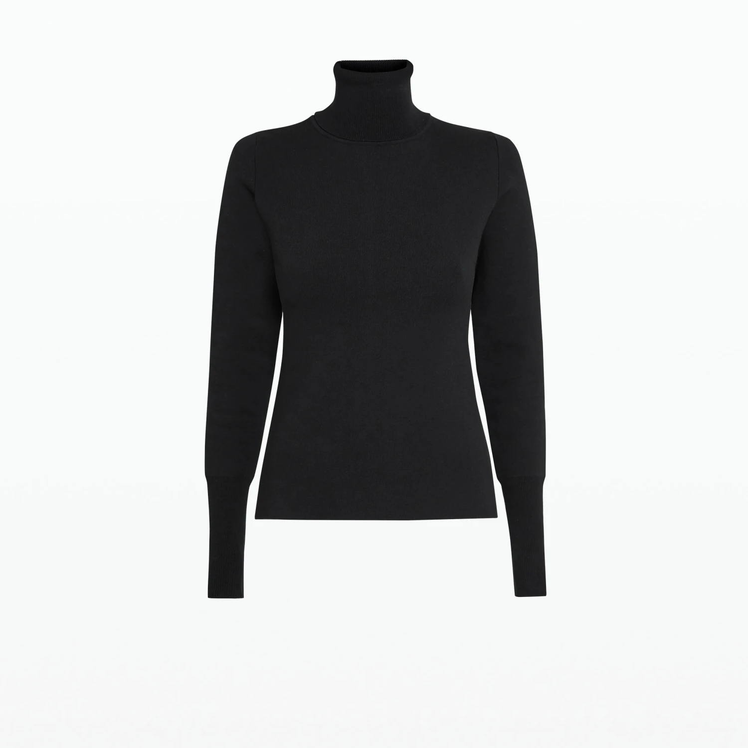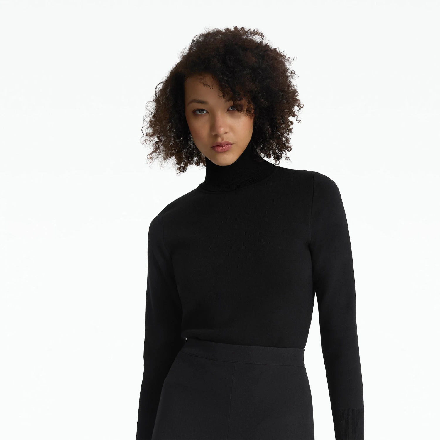 Classic turtleneck with wide cuffs and flattering cut in black Bodycon Stretch Knit.