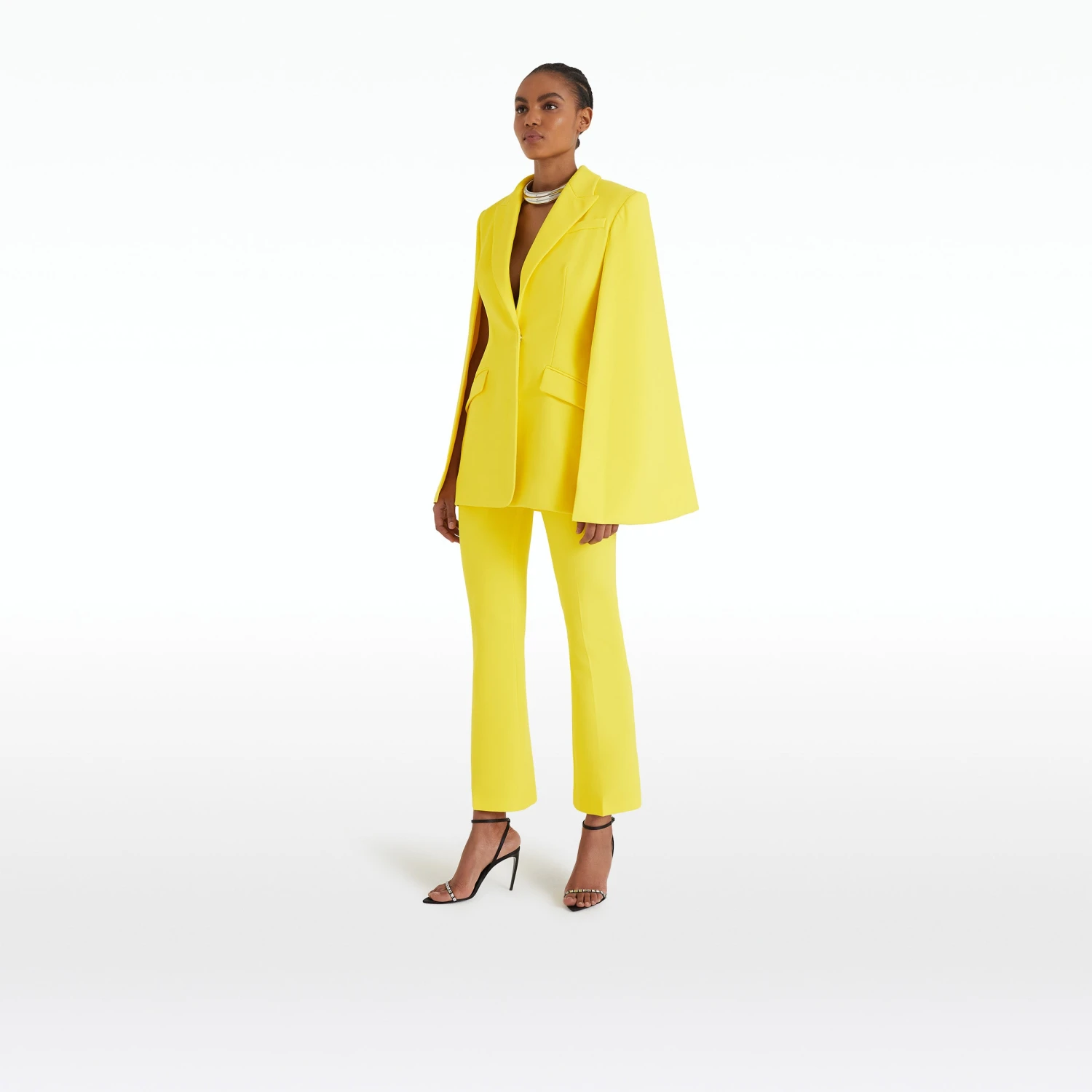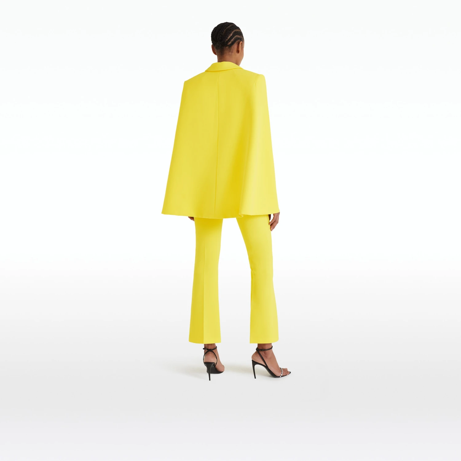 Caped, single breasted, tailored jacket in buttercup Heavy Crepe.