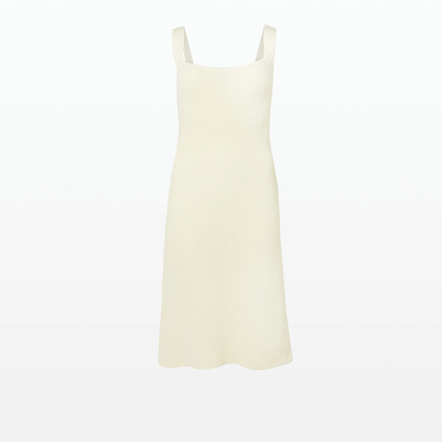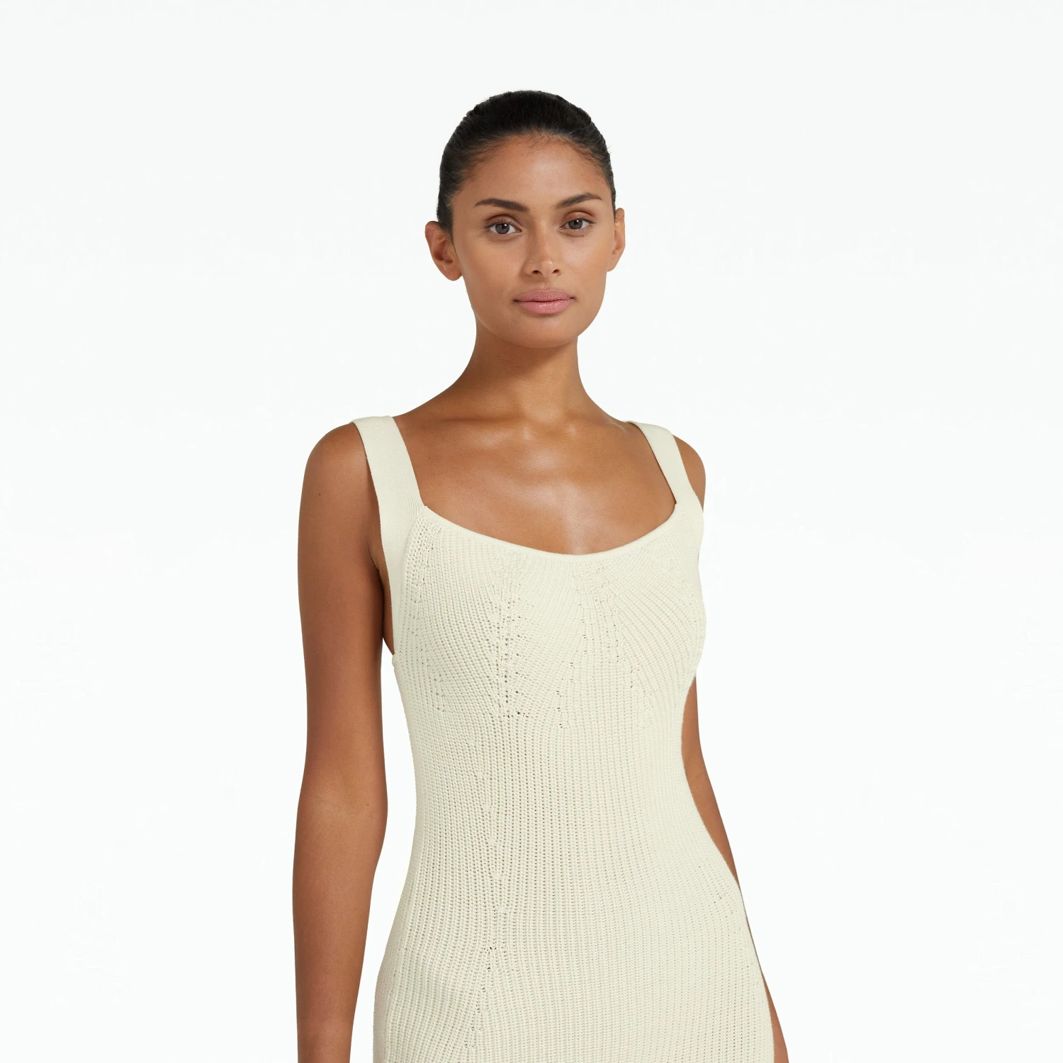 Heart shaped, A Line mini dress with straps in ivory crochet.
