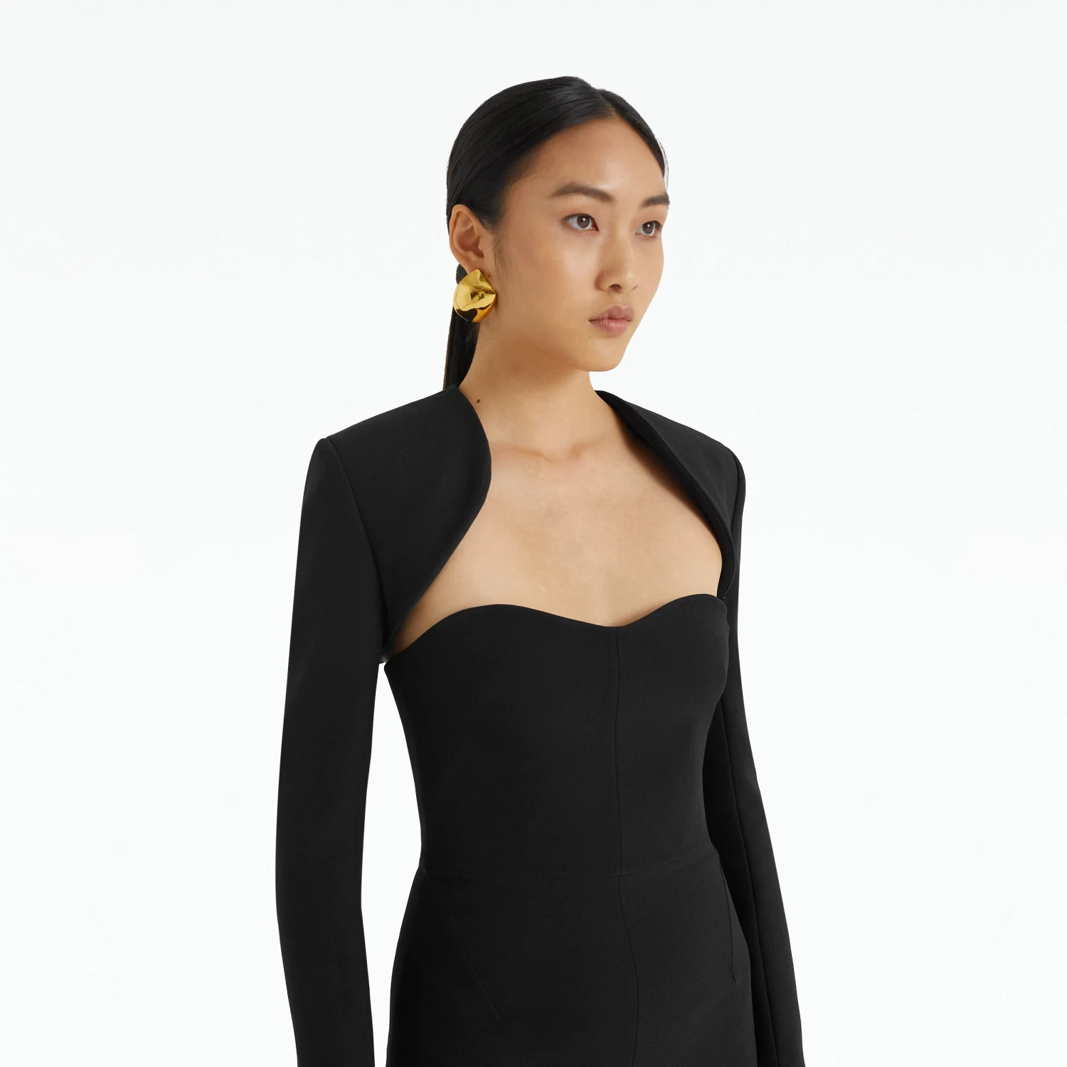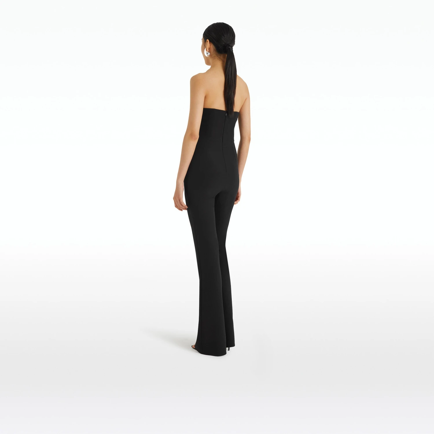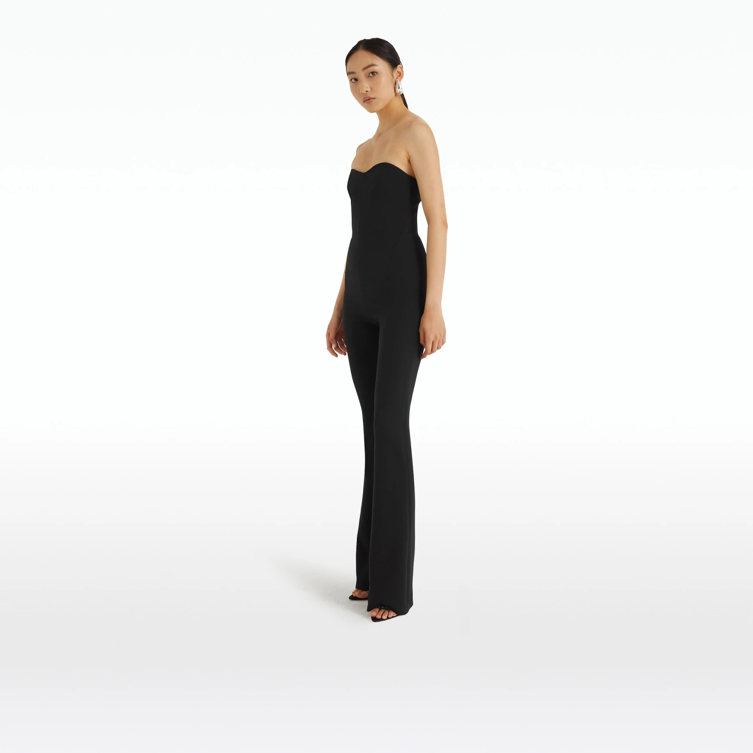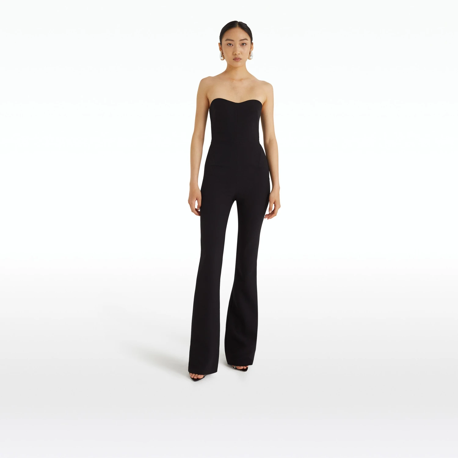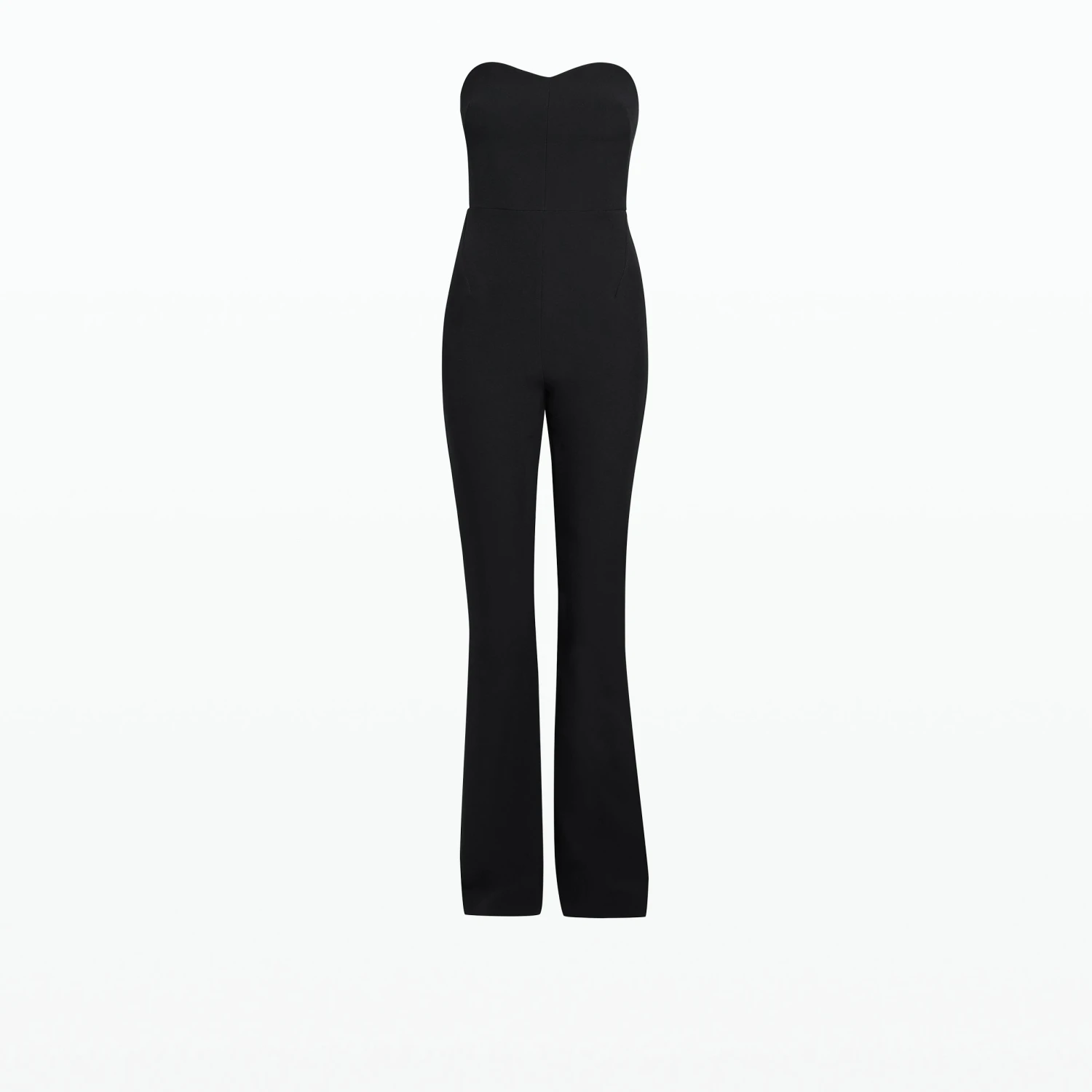 Bustier jumpsuit with semi-flare leg in black Heavy Crepe.