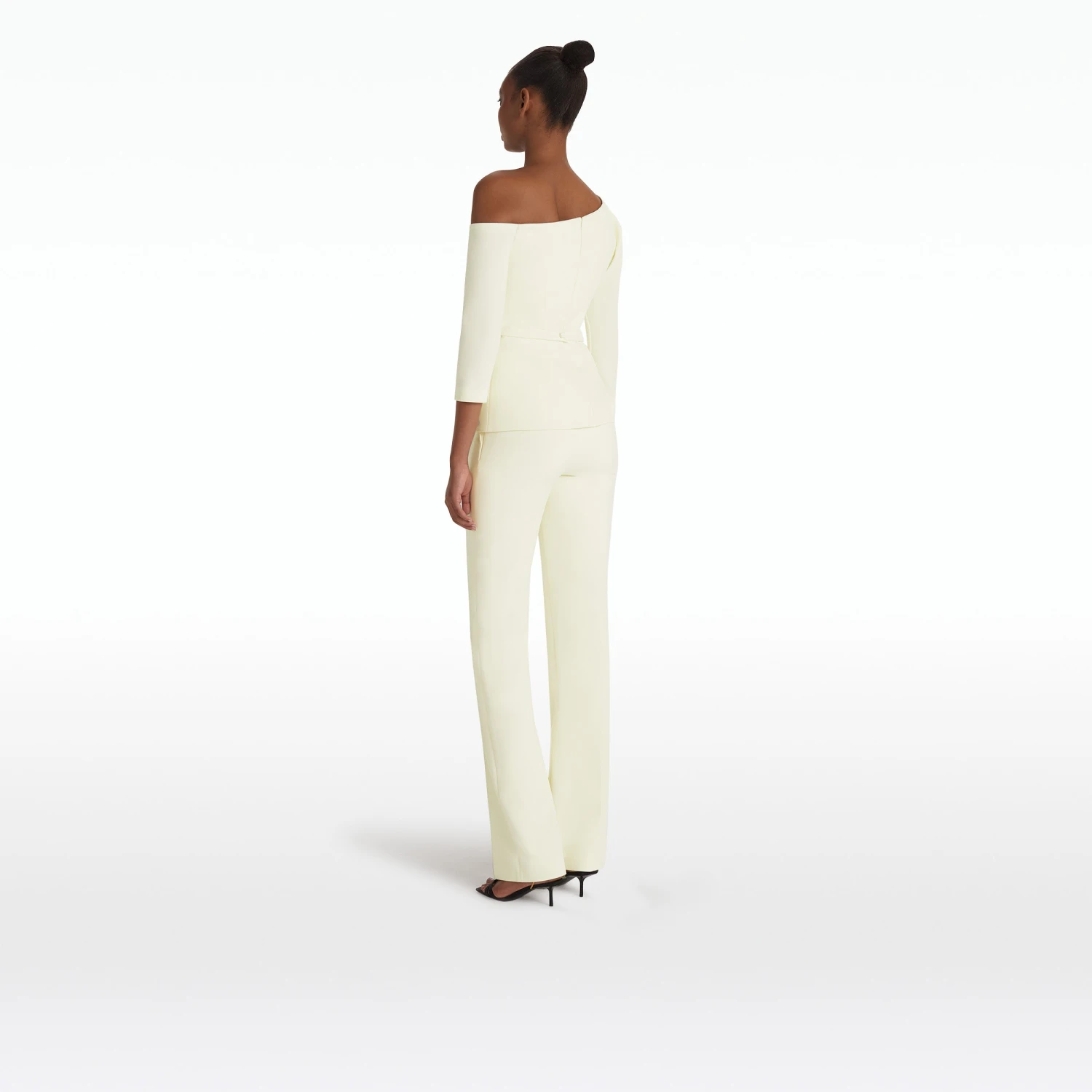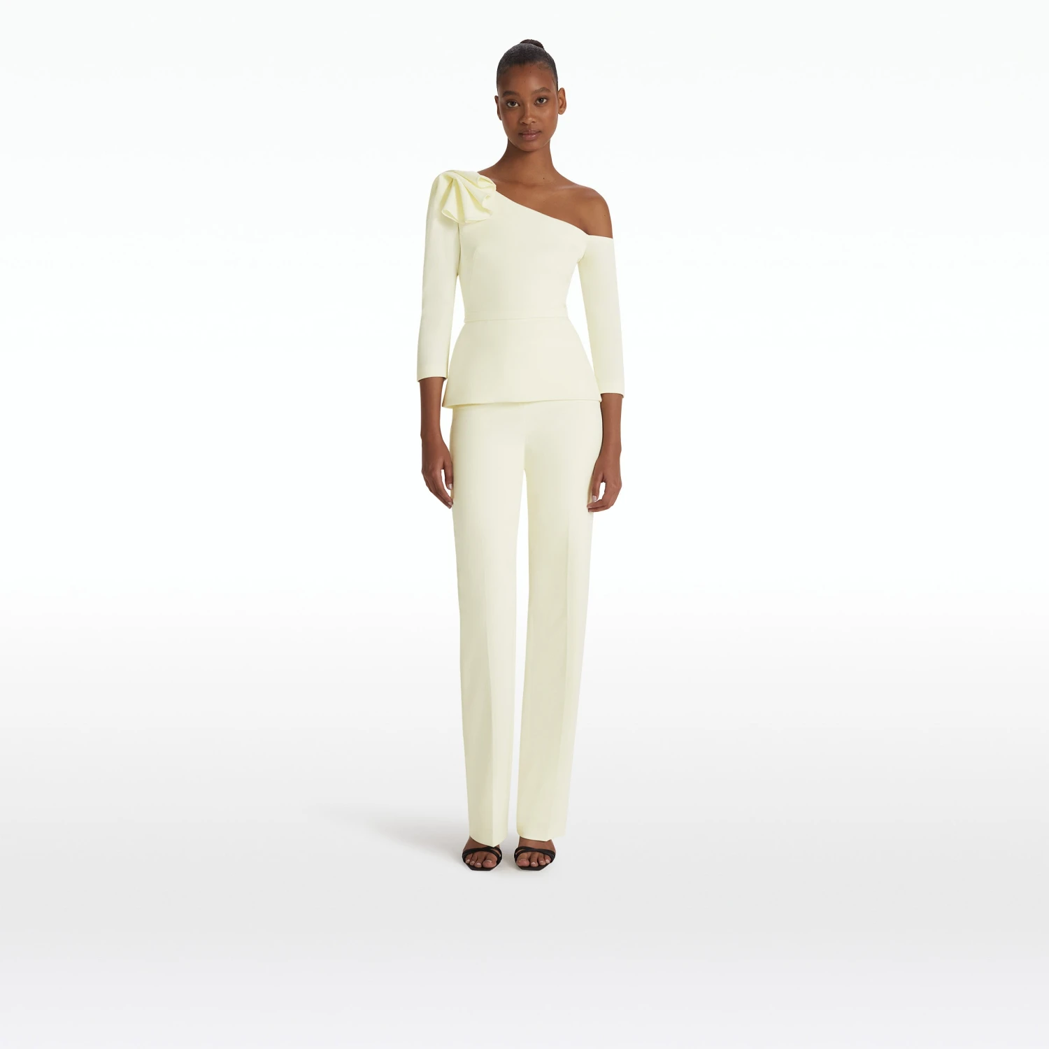 Top with asymmetric neckline and peplum in sorbet Heavy Crepe.