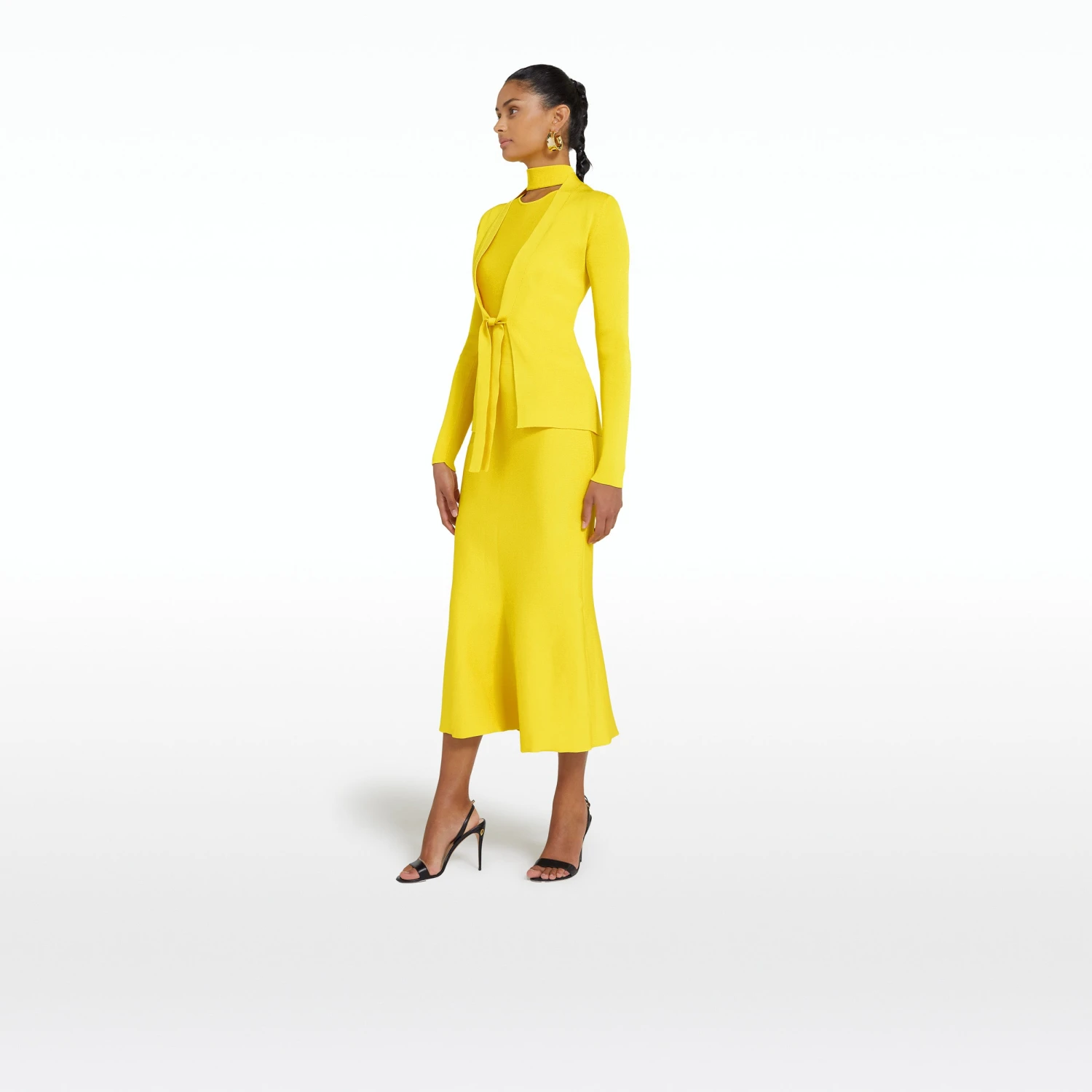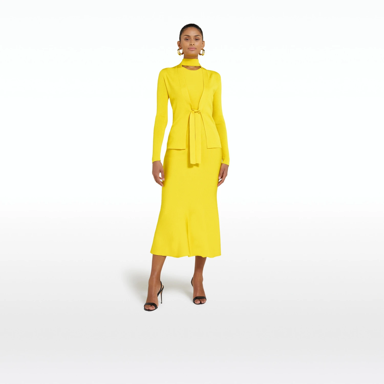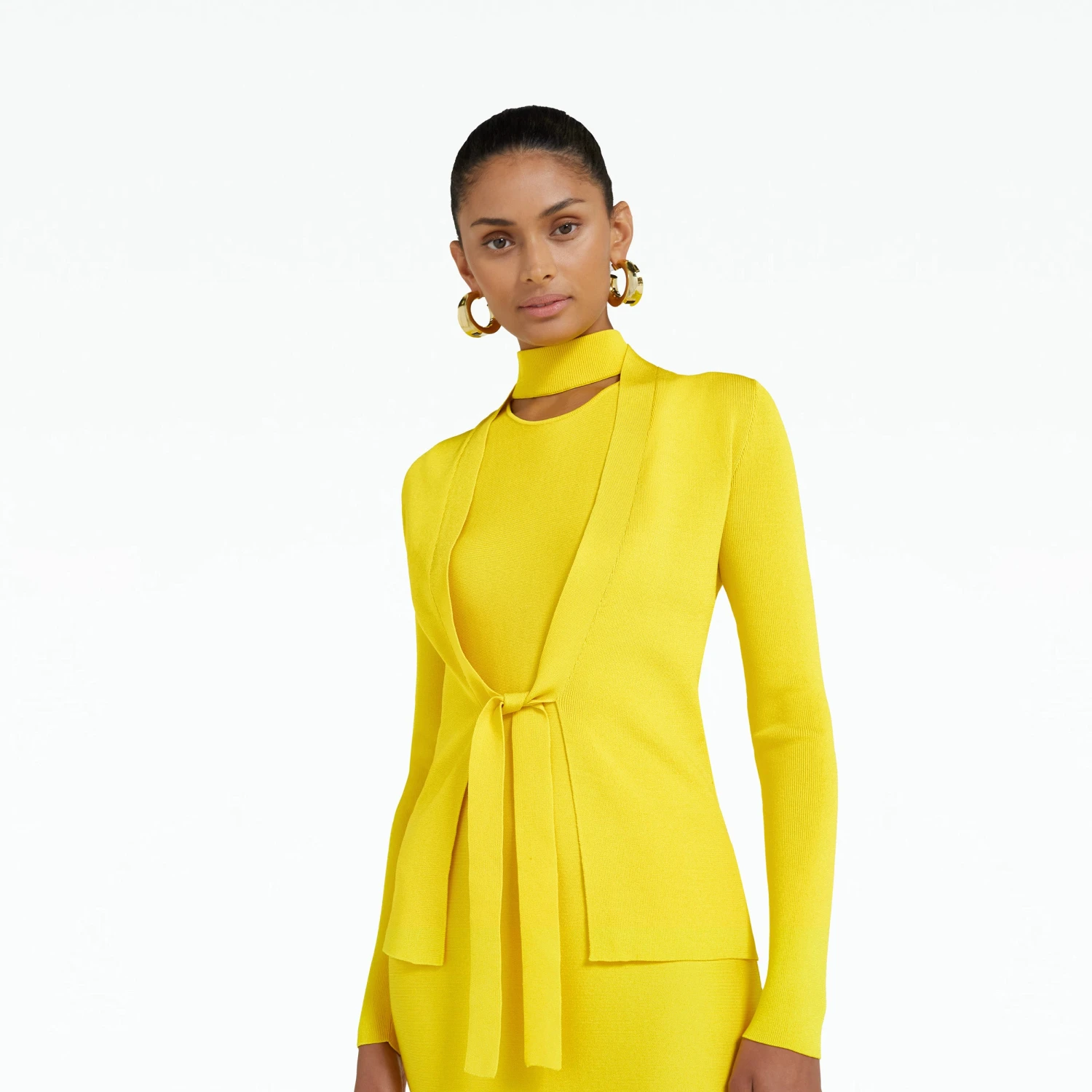 Long sleeve, cardigan with front tie detail in canary.