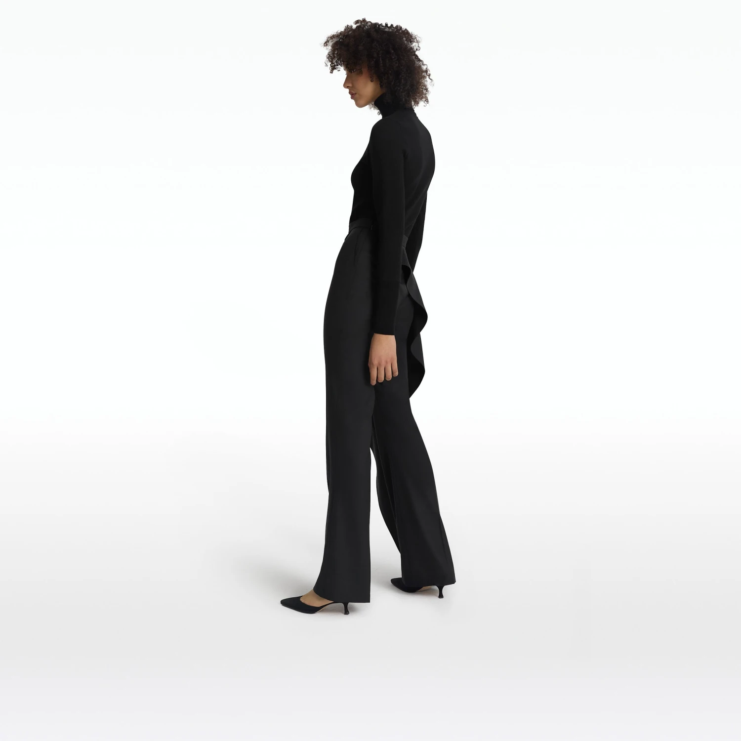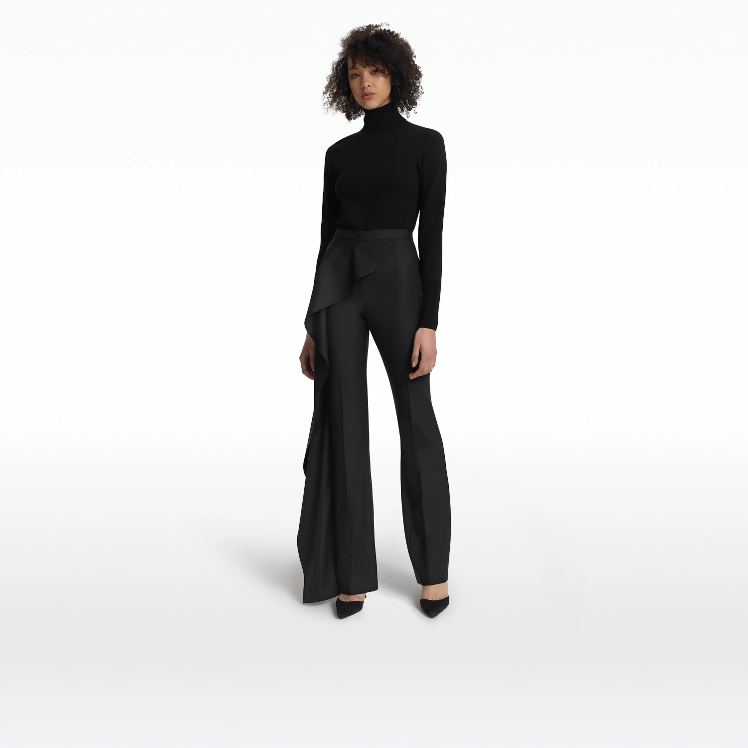 Semi-flare leg trousers with side leg drape in charcoal Wool Blend.