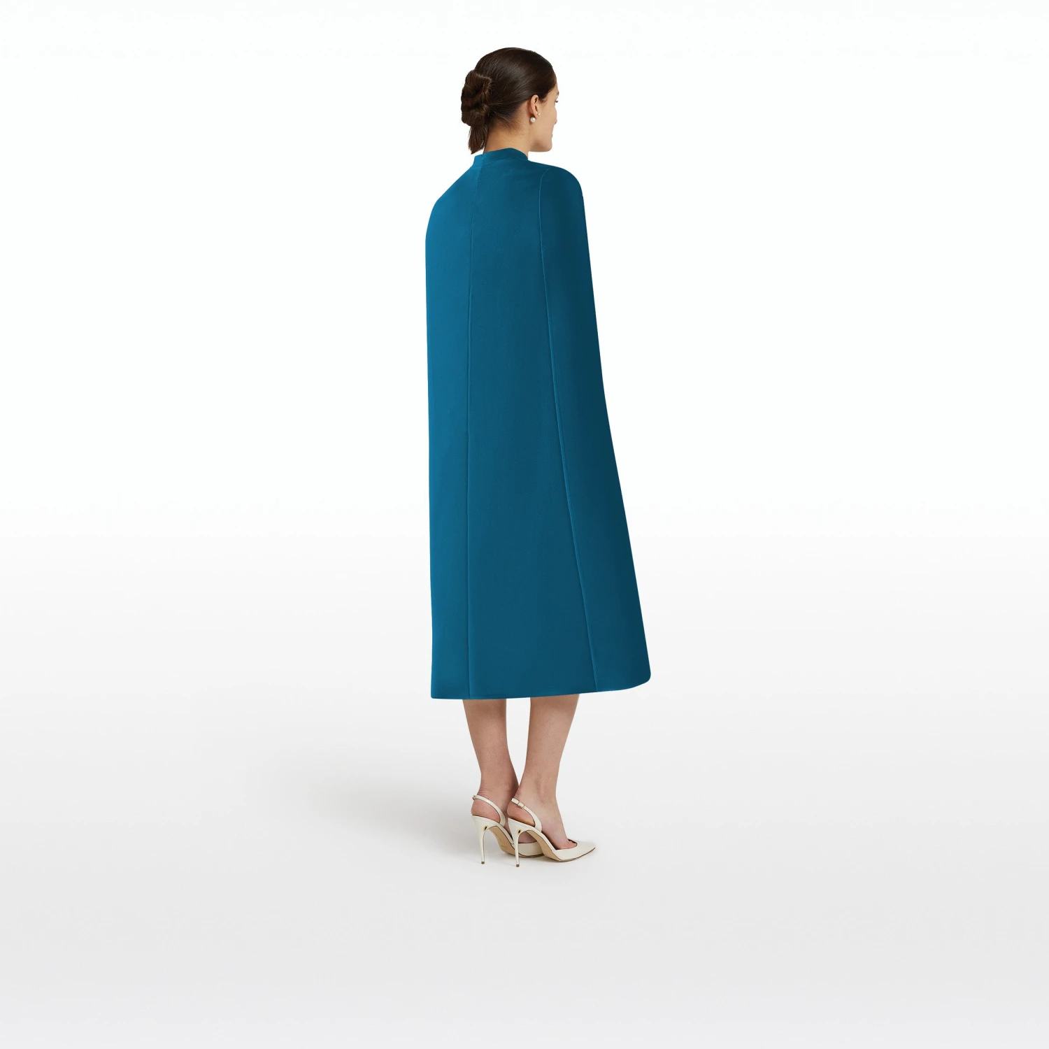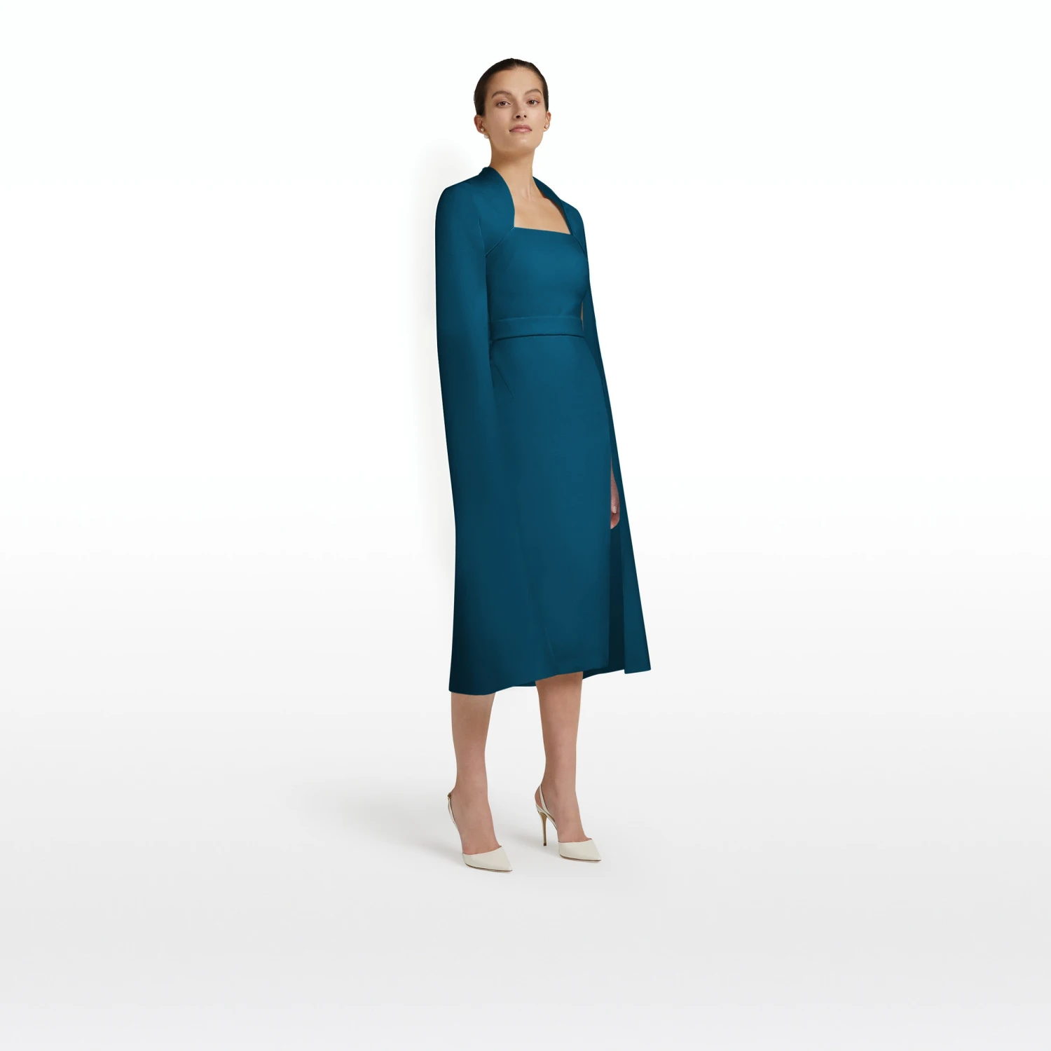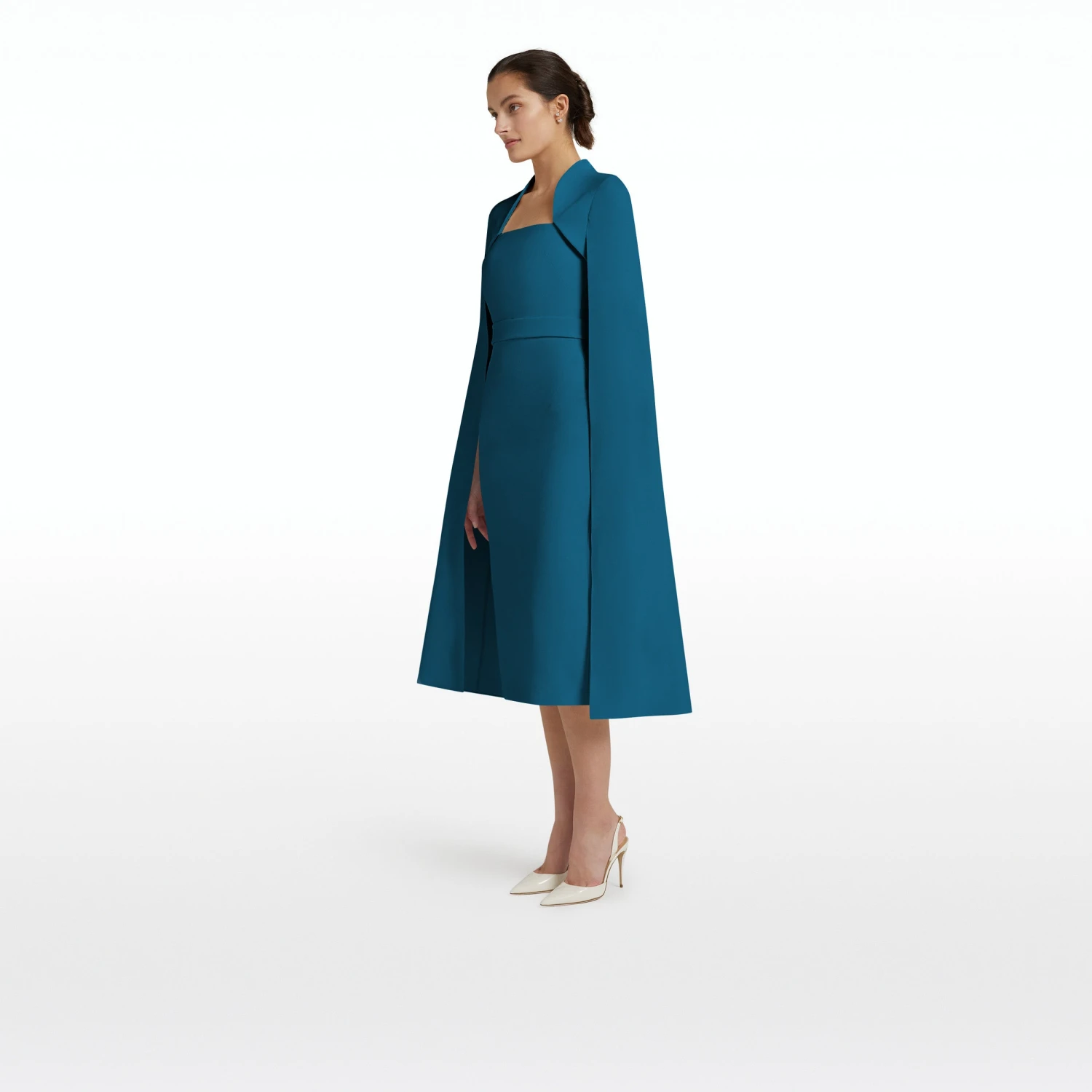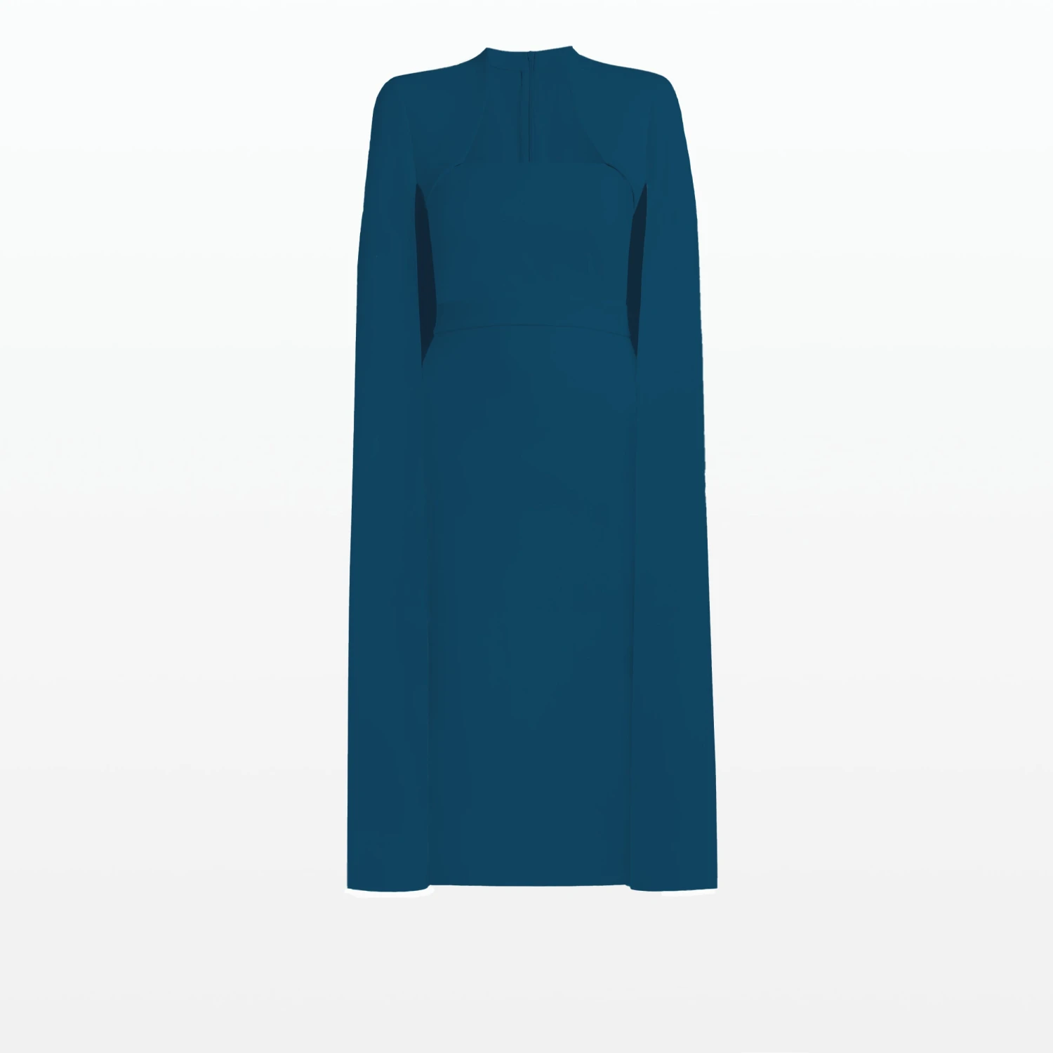 Caped back, A-line, cocktail dress in poseidon Heavy Crepe