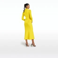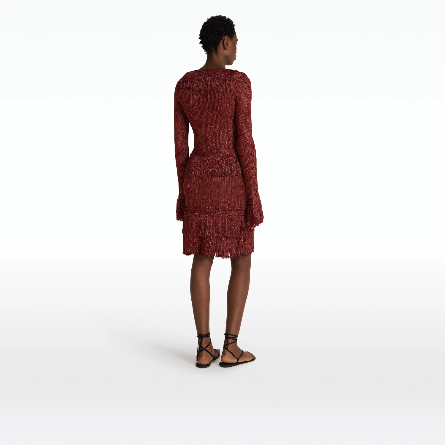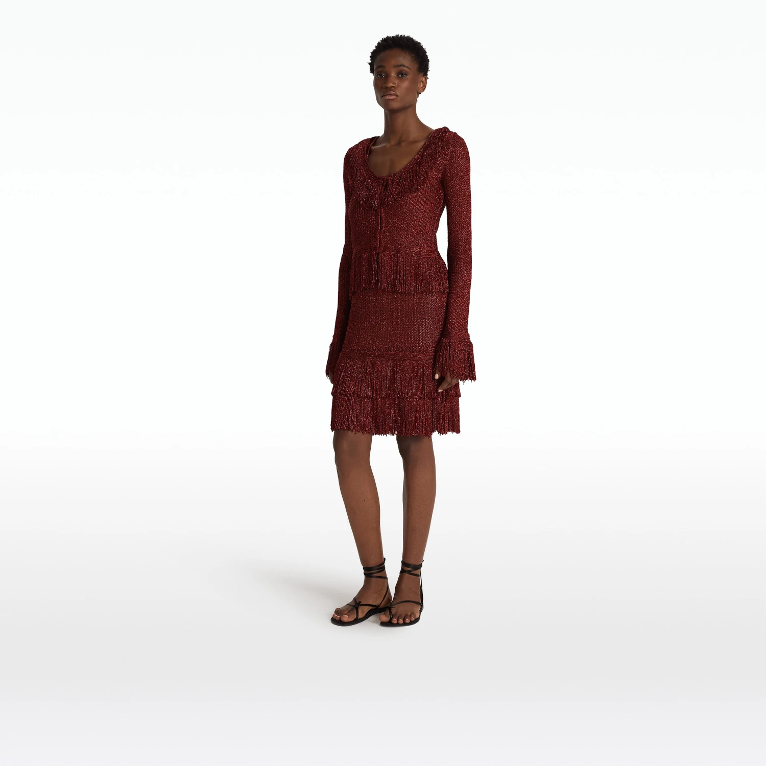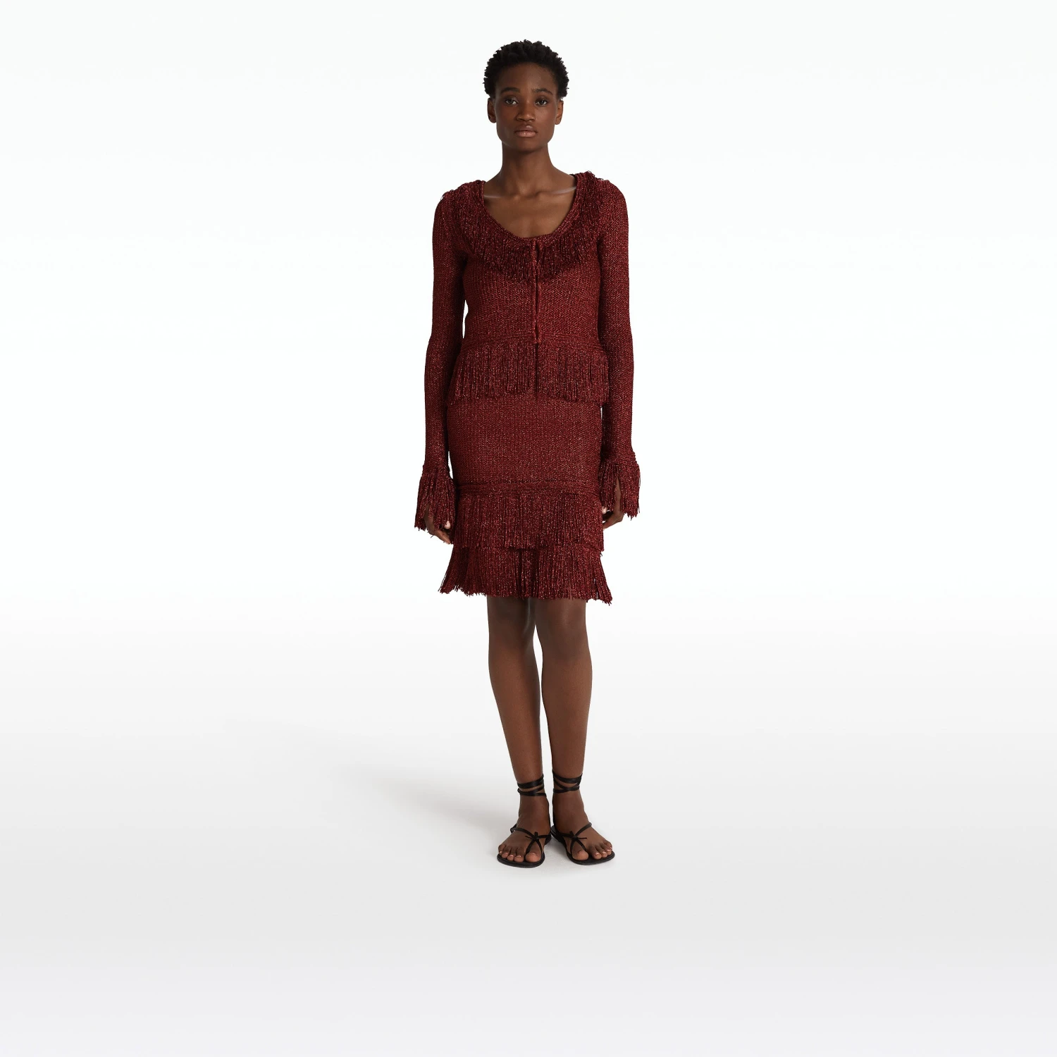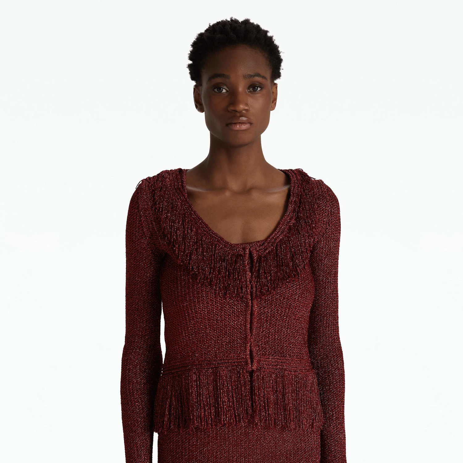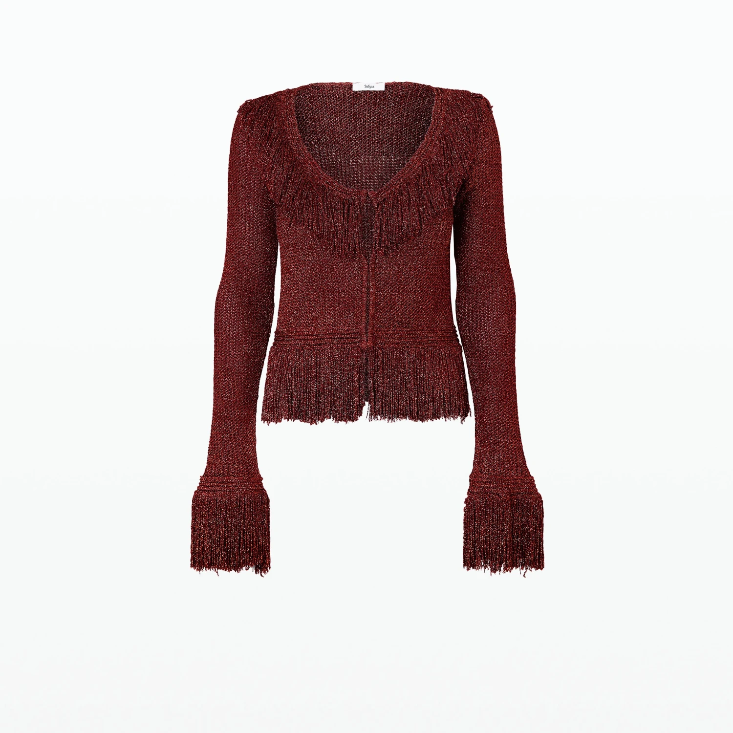 Scoop neck, long sleeve cardigan with fringing in amber sun Miami Knit.