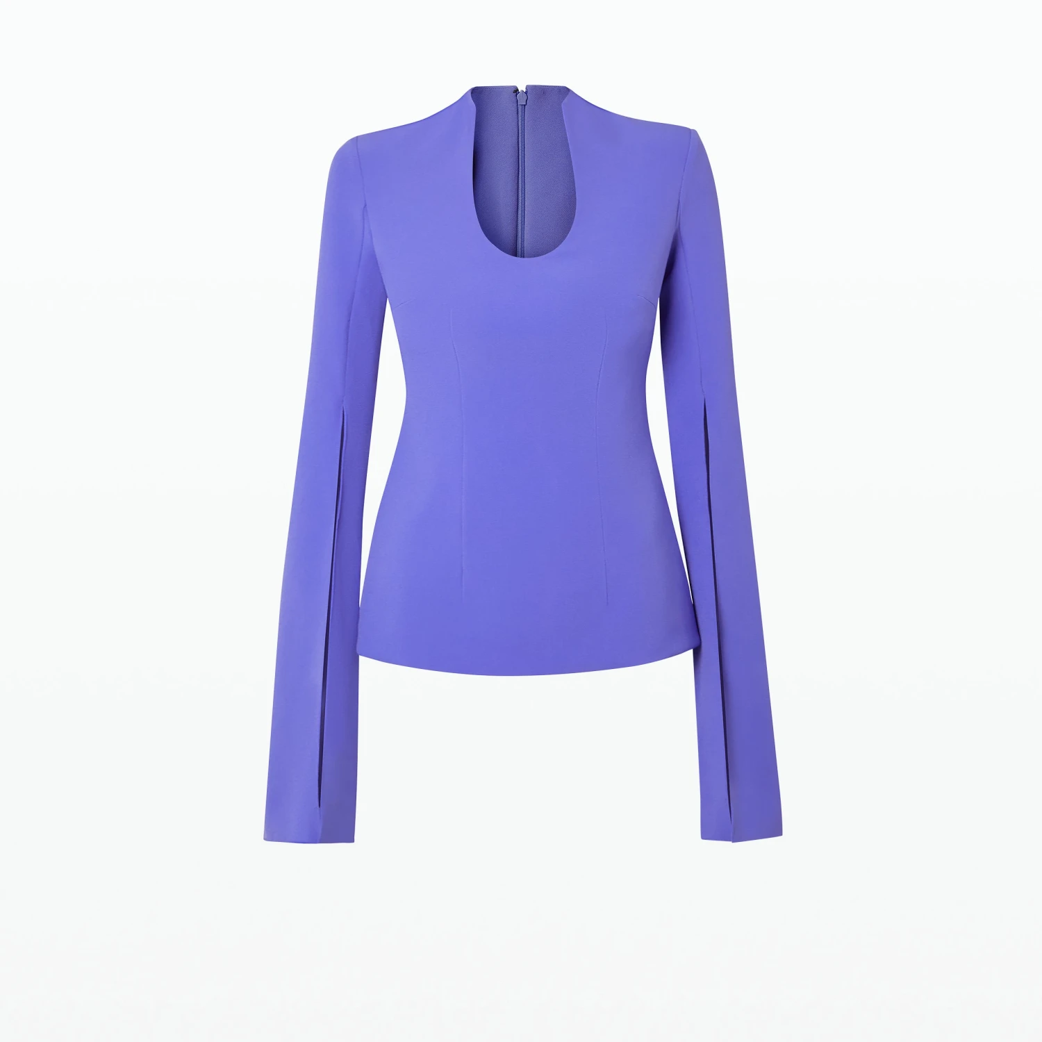 Top with slit sleeves and scooped out neck in amethyst Heavy Crepe.